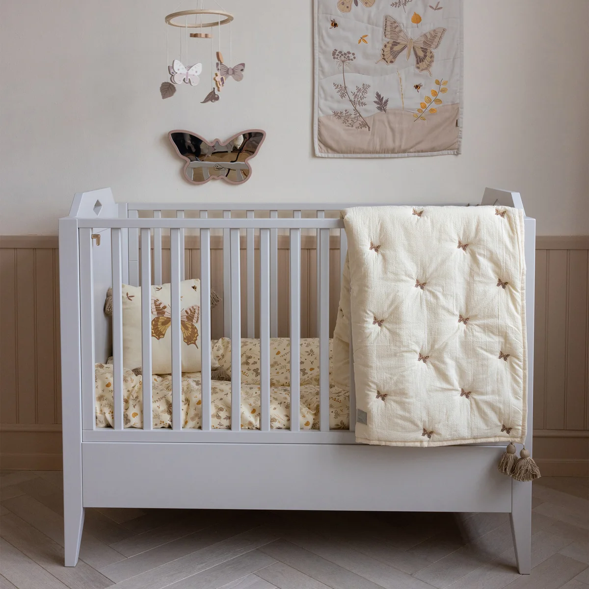 The embroidered blanket impresses with its delicate embroidery, which makes each piece a unique work of art. The detailed patterns are kept in harmonious colors and lend every room a sophisticated, Nordic charm.