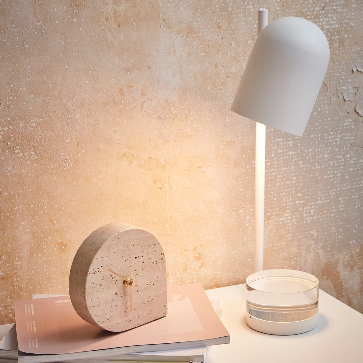 In a beautiful marble design, the clock gets a natural look that makes it elegant. The clock provides subtle details on the windowsill, shelf or desk. Complemented with pampas grass or other dry plants in a simple vase, you can create an understated yet expressive interior design that is modern yet warm and homey.