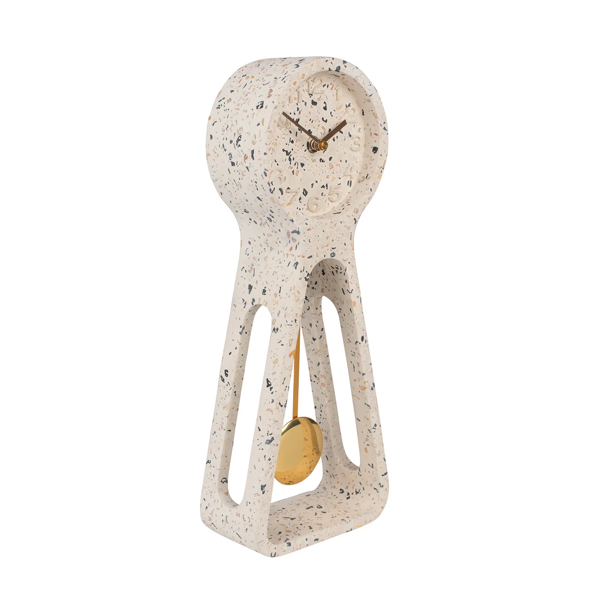 Measuring 38 × 14.5 × 6 cm, the clock blends in harmoniously on sideboards, shelves or desks. The analog quartz movement ensures reliable timekeeping, while the visible pendulum brings gentle movement and a touch of nostalgia to modern spaces. Each clock is unique due to the natural concrete surface - with slight shades of color that emphasize the character. The clock requires an AA battery (not included).