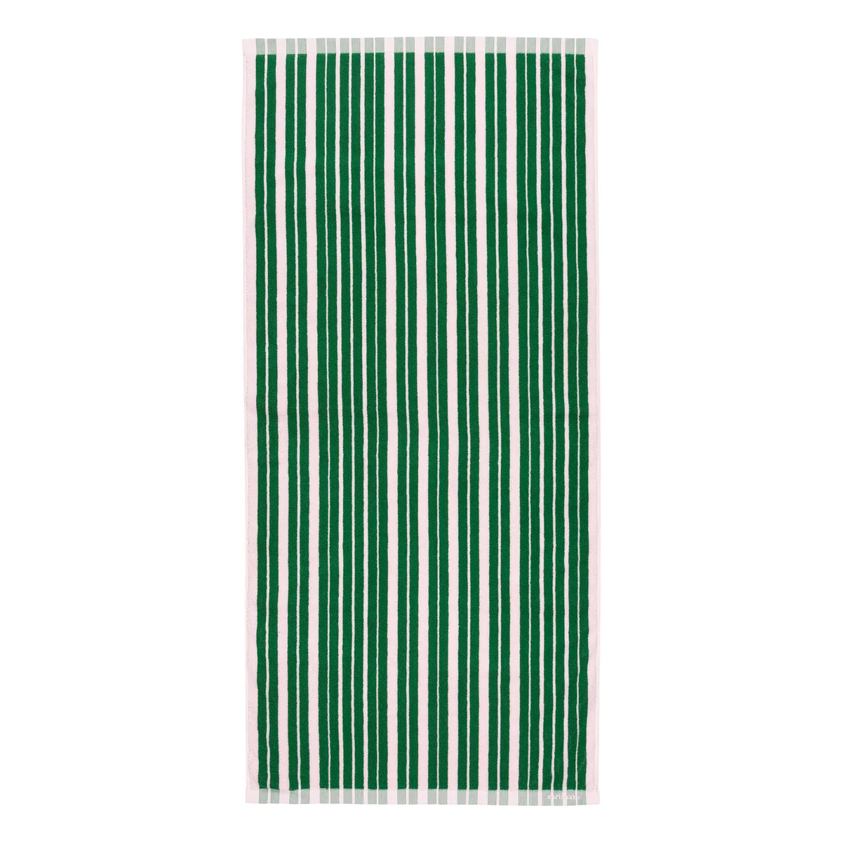 This bath towel made of soft organic cotton terry cloth combines comfort with timeless design. The Raide pattern designed by Annika Rimala, inspired by train tracks, gives the towel a dynamic and hand-drawn look.