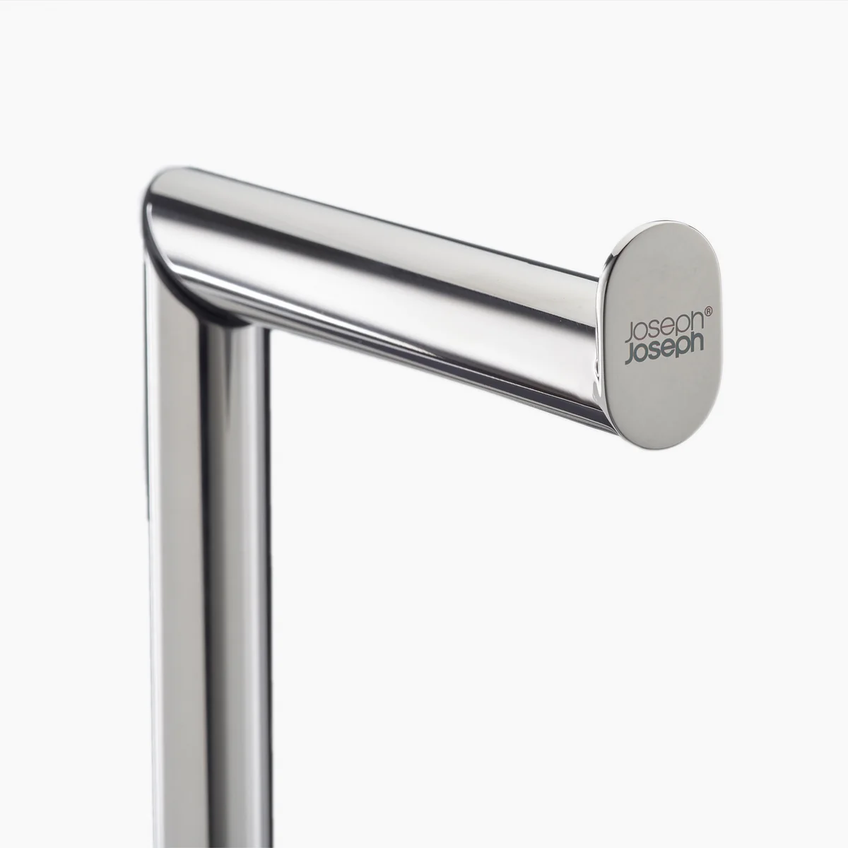 The EasyStore Luxe 2-in-1 toilet roll holder from Joseph Joseph is the perfect solution for keeping your bathroom neat and organized. This stainless steel toilet roll holder combines smart design with practical functionality. With space for up to four rolls, it not only offers sufficient storage space, but also doubles as a dispenser. By simply turning the roll holder, you can add additional rolls, while the elegant polished stainless steel finish brings an appealing aesthetic to your bathroom. The simple assembly instructions make installation a breeze. With the EasyStore Luxe 2-in-1 toilet roll holder, you can effortlessly combine style and organization.