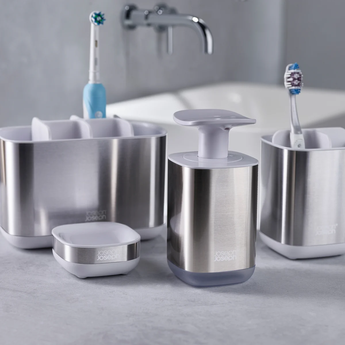 Available is the EasyStore Steel Toothbrush holder from Joseph Joseph in different sizes.