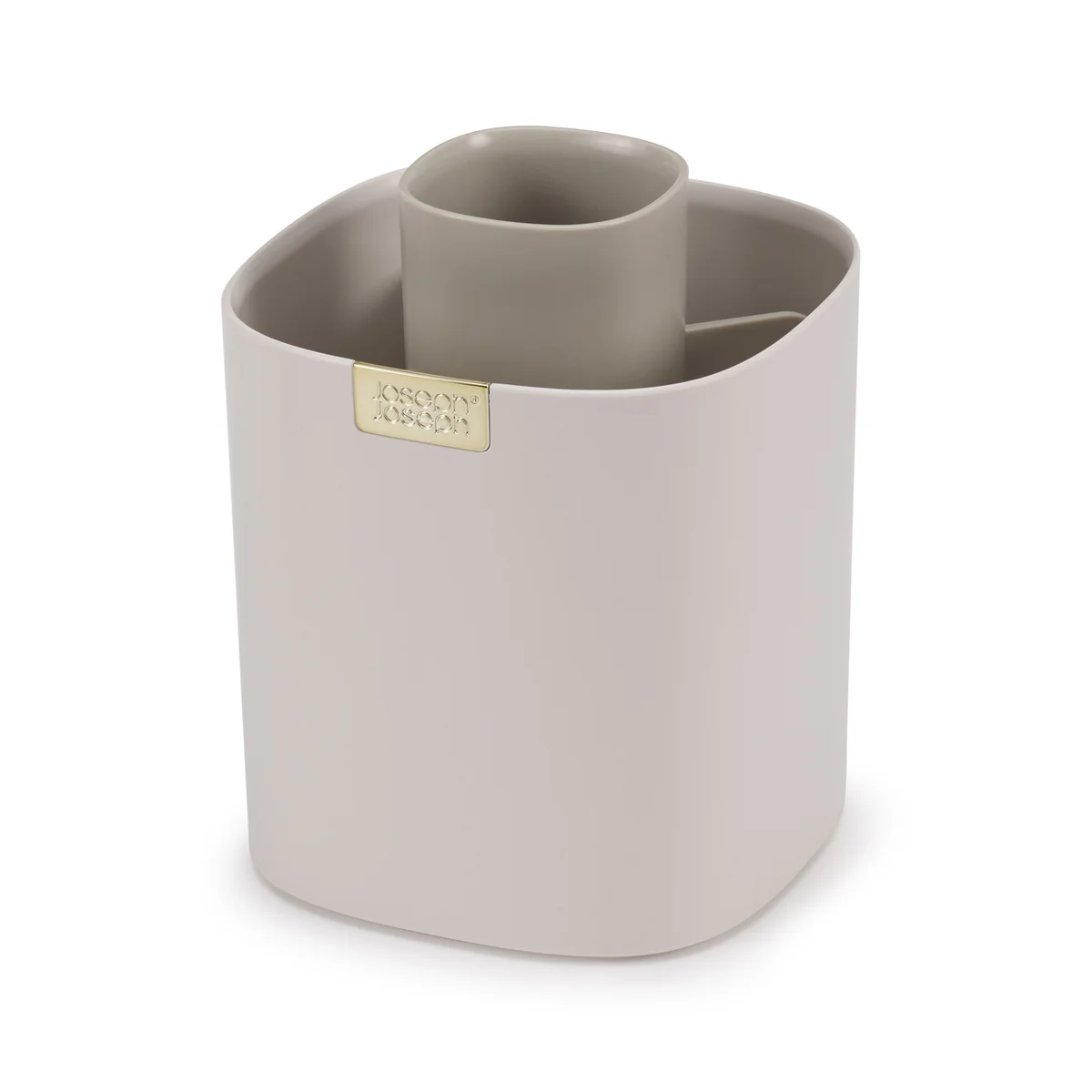 The Viva Makeup brush container of the British manufacturer Joseph Joseph offers wonderful order. Makeup brushes, mascara and Co have optimal space in the brush container. The tiered design allows ideal access and optimal clarity. The chrome-plated label provides a noble touch. If necessary Viva Makeup can be easily disassembled for cleaning.