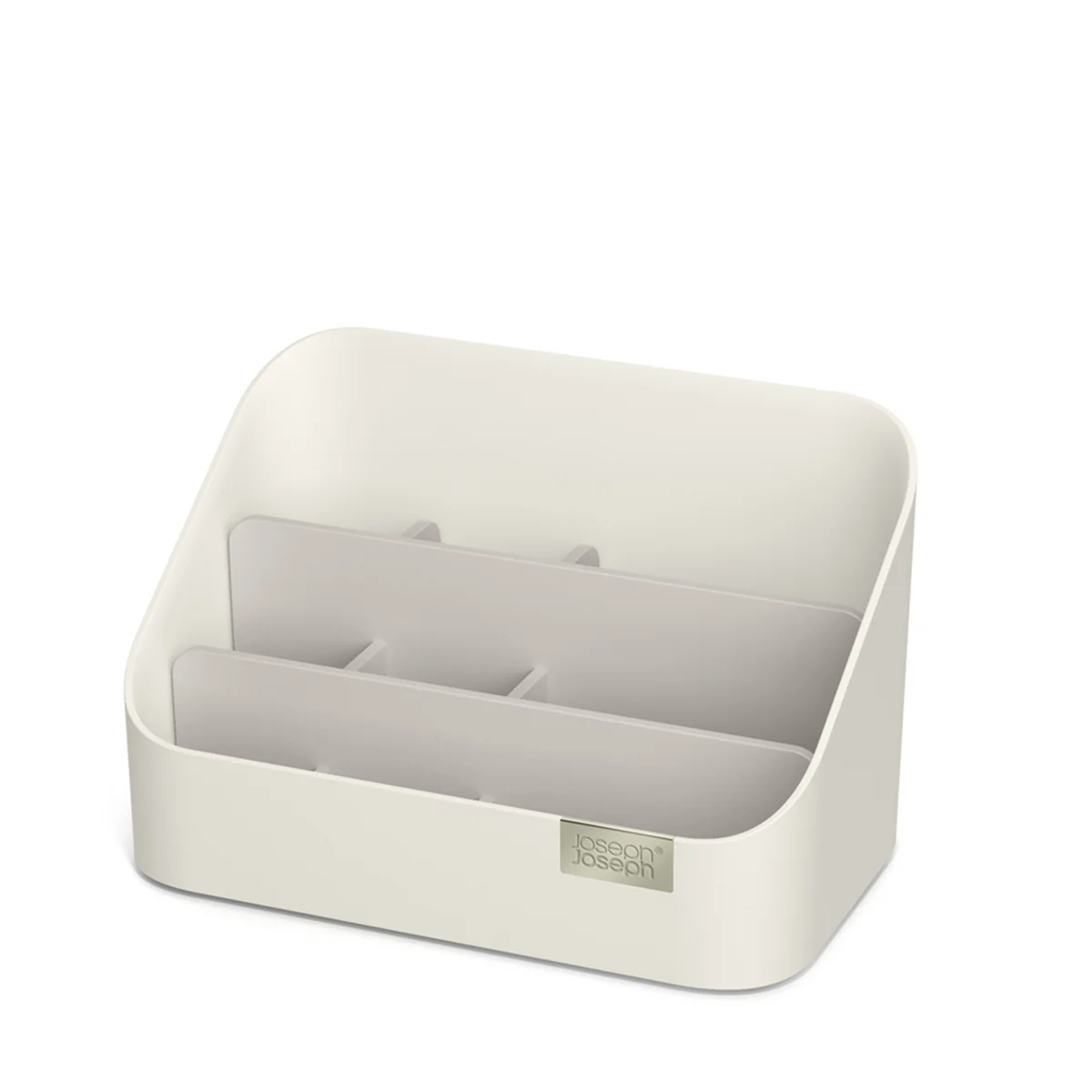 The tiered Viva cosmetic organizer from Joseph Joseph offers enough space for all kinds of cosmetic products. Brushes, lipsticks, blush and mascara find their place in the compartments. The compartments are arranged in steps so that the cosmetic products can be easily accessed. The compartments can also be removed for easy cleaning.