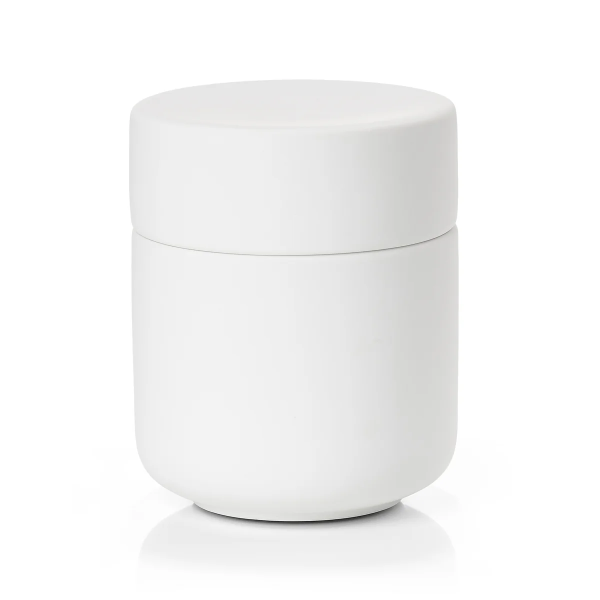 The Ume jar with lid from Zone Denmark has the same simple elegance as the rest of the bathroom series. Ume bathroom series. Hair clips, cotton buds or pads and make-up can be stored in the earthenware jar, ready to hand at all times. The lid means that the contents are not visible at first glance, creating a tidy ambience.