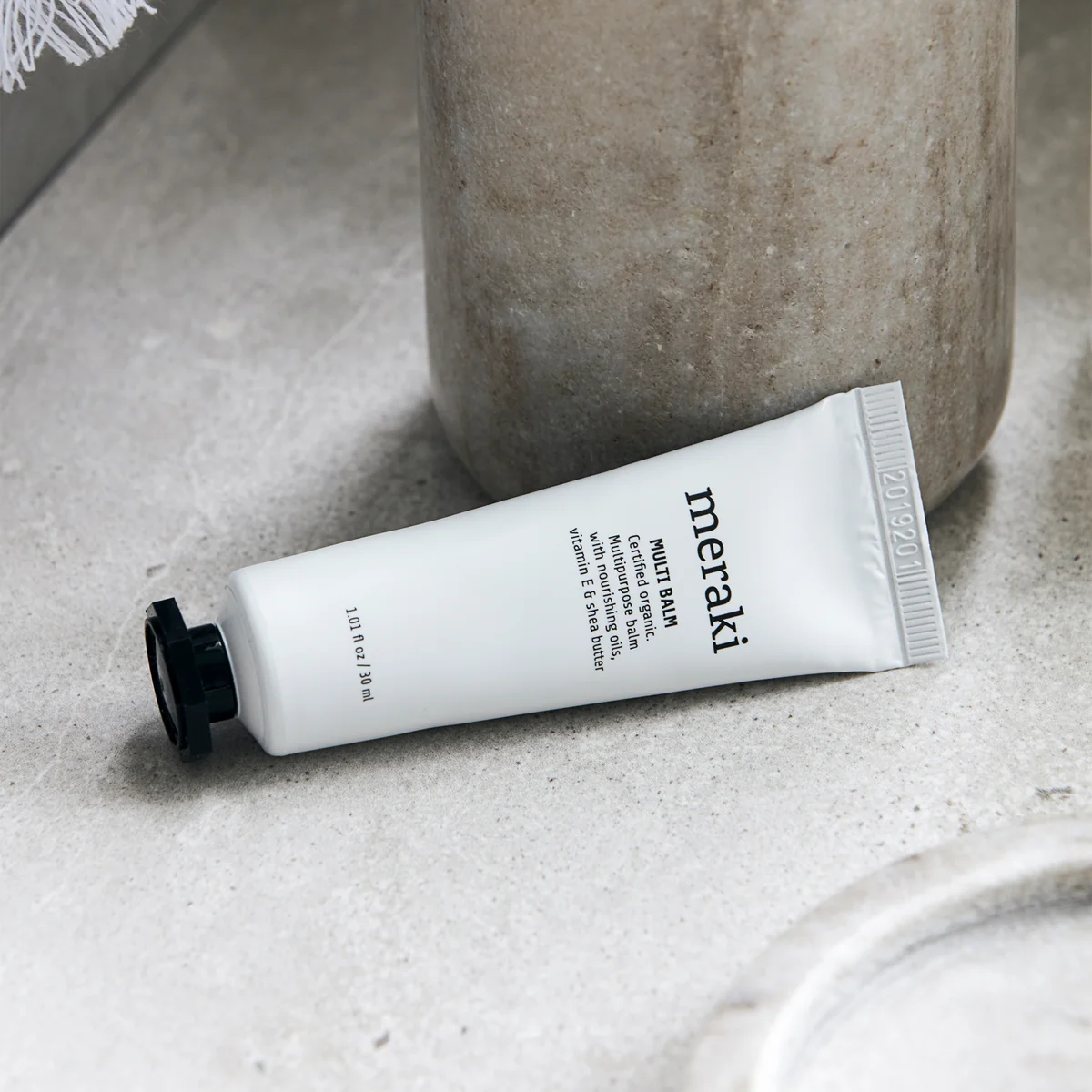 The multi care balm from Meraki offers an intensive moisture boost and rich care for dry or stressed skin. All ingredients are designed to soothe dry and irritated skin and restore the natural moisture balance. Shea butter binds moisture and supports skin elasticity, while almond oil and sunflower oil with vitamins provide additional care.