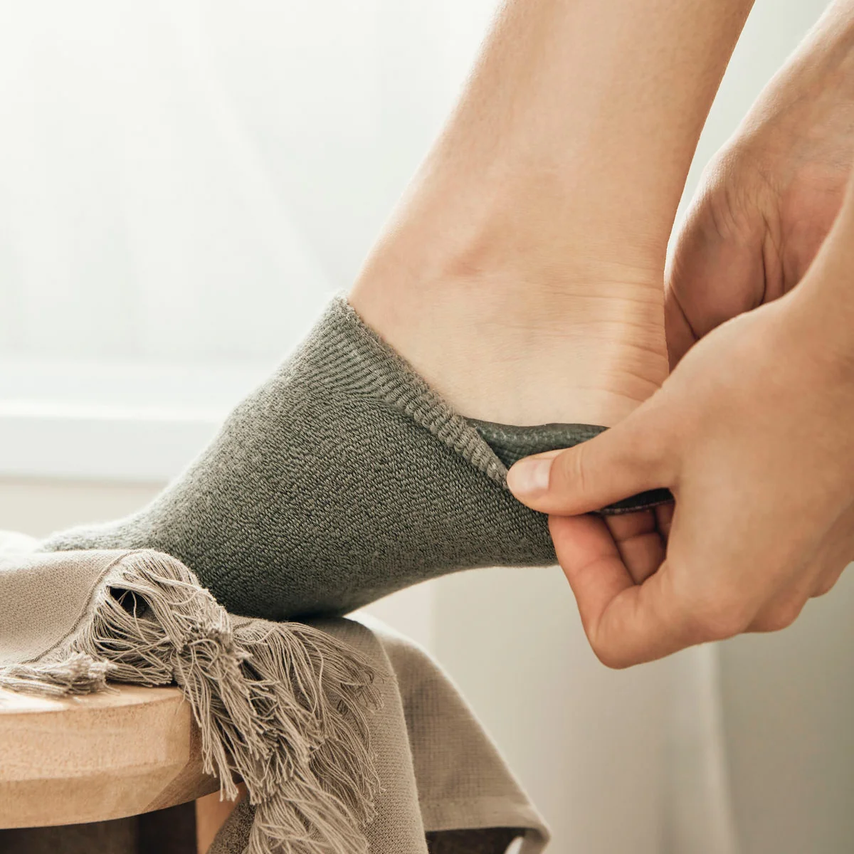 - Apply a generous amount of cream to your feet and put on your socks.
