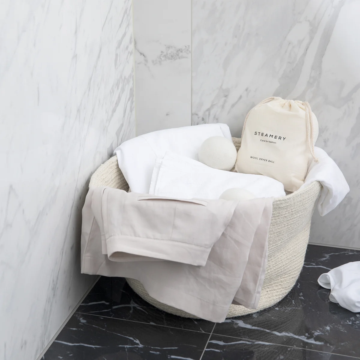 The 100% wool dryer balls from Swedish company Steamery are a smart, cost-effective and sustainable alternative to fabric softeners and plastic dryer balls. The balls shorten drying time in the clothes dryer while eliminating static electricity. In addition, because the balls soften textiles, there is no need to use a liquid fabric softener.