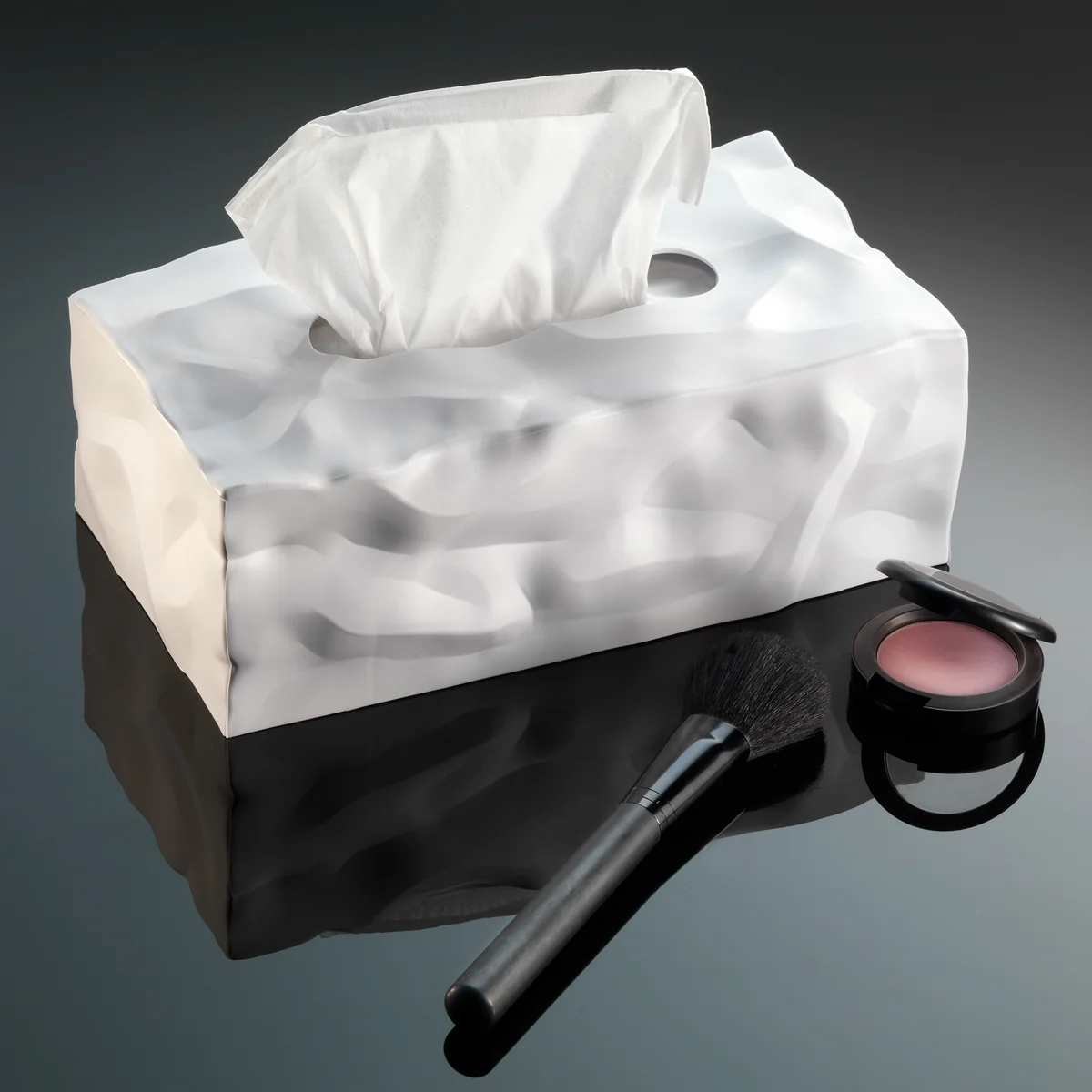 In the same design language as his successful paper baskets Bin Bin and the pen holder Pen Pen, the Danish designer John Brauer offers with Wipy 2 a stylish storage box for paper towels that is anything but unimaginative. Wipy 2 Fits ideally into any room and readily dispenses paper tissues. The crumpled design visually complements the paper towel protruding from the top for a playful overall look. Wipy 2 Holds most standard tissue boxes.