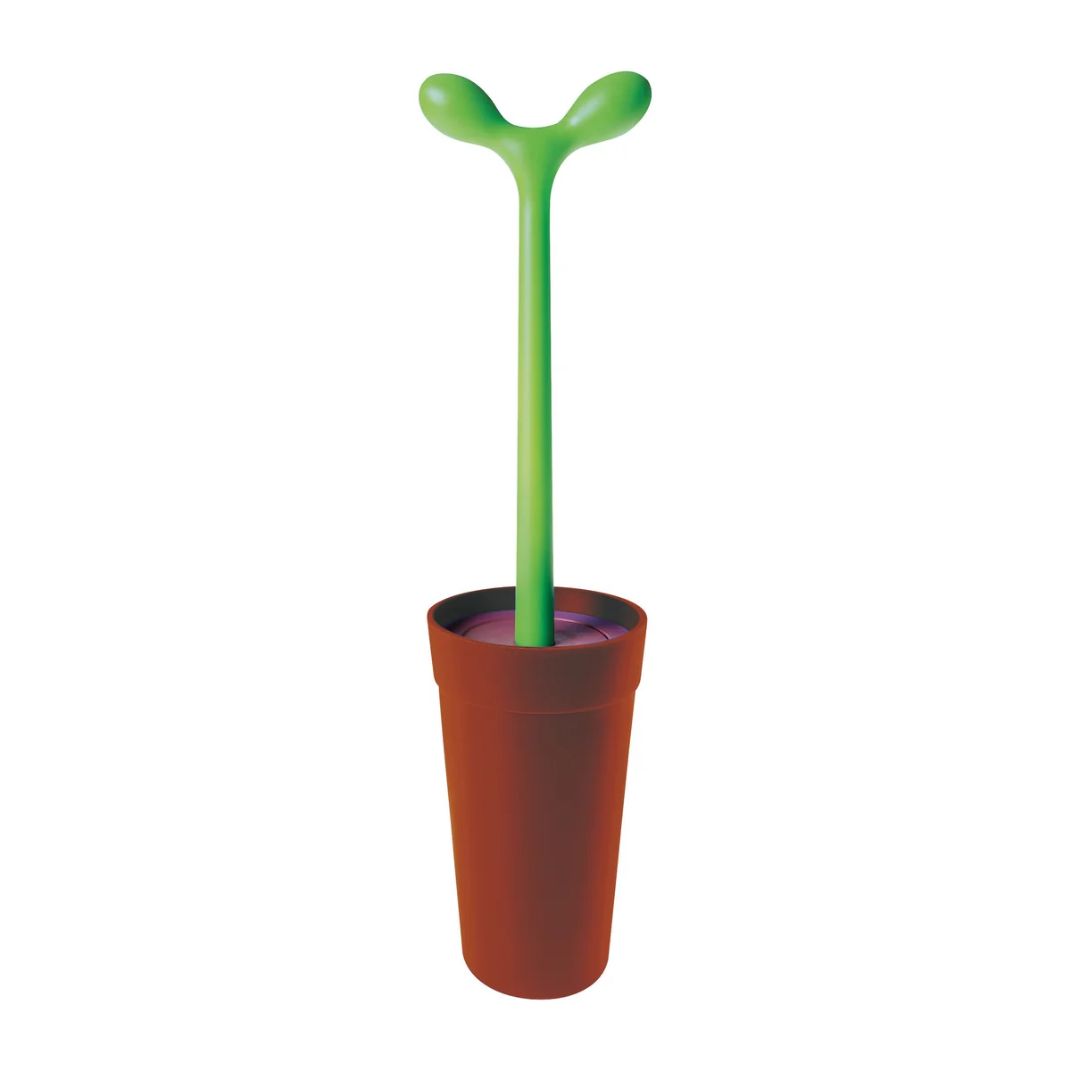 "Merdolino" looks like a plant at first glance. The toilet brush itself looks like a cactus or something similar and the parking device looks like a flowerpot.