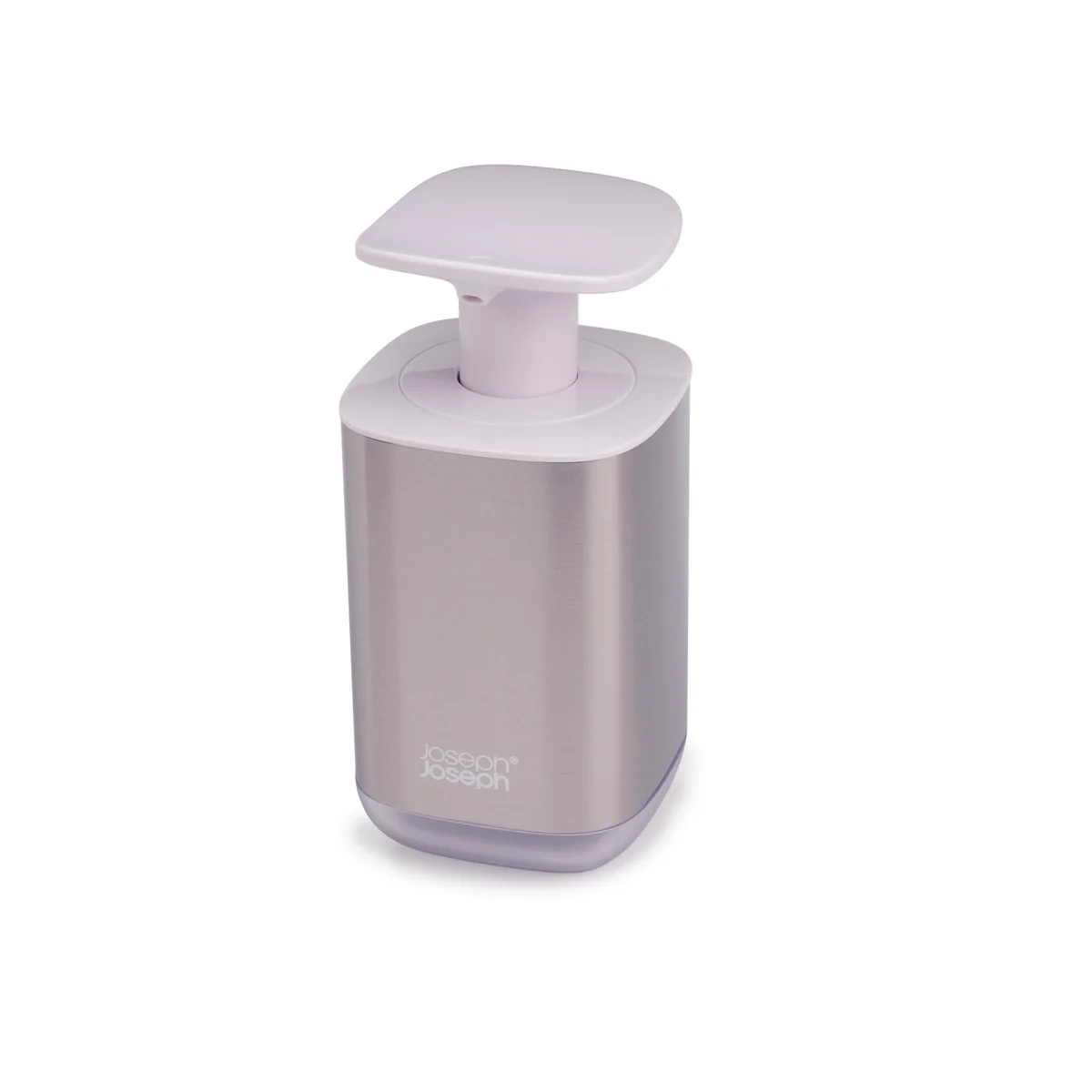 The Presto Steel Soap dispenser from Joseph Joseph has an especially large pump head, which allows the operation with the wrist or forearm. This method of application is particularly hygienic and also practical in case your hands are particularly dirty.