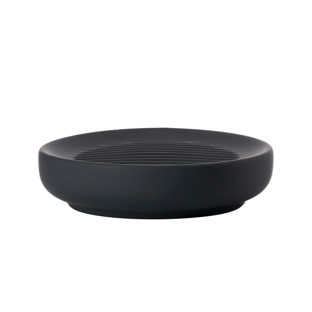 The Ume soap dish is part of the eponymous series of bathroom accessories from Zone Denmark , which are characterized by a simple design, soft contours and a special surface texture. The dish is made from porcelain, which is then finished with a Soft-Touch surface. This not only gives the bowl a high-quality appearance, but also makes it pleasant to the touch.