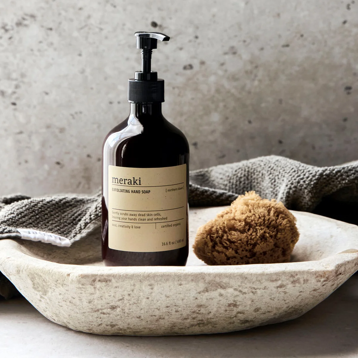 This hand soap with exfoliating effect from Meraki ensures soft and supple hands. Certified organic, it gently removes dead skin cells with fine substances. Hands feel clean and nourished after washing - perfect for a fresh start to the day.