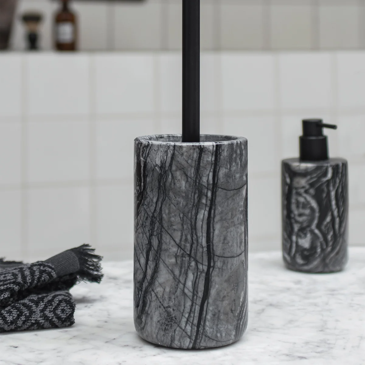 The use of dark marble gives the toilet brush an elegant and timeless appearance. The marble can have different natural veins and shades of color, which makes each piece unique.