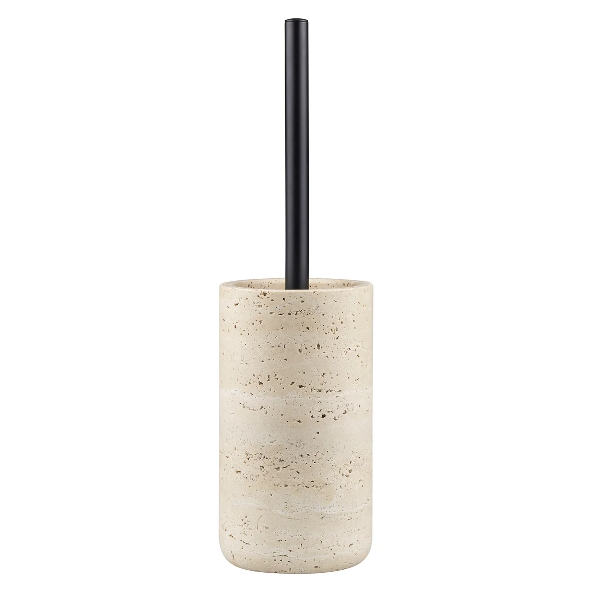 With its sturdy base and solid weight, the toilet brush holder stands securely on the floor. It is equipped with a black metal handle and a matching brush head. Can be combined with other items from the Travertine collection to create a harmonious and stylish bathroom design.