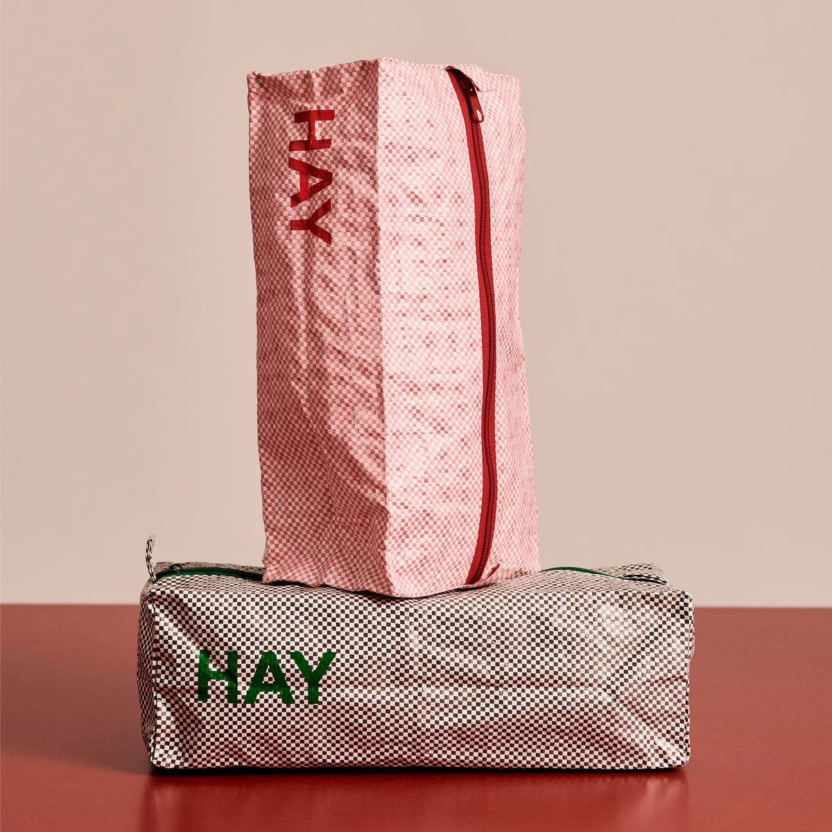 Equipped with a zipper and the striking HAY -logo, the toiletry bag keeps your essentials securely in place - whether at home, on the go or when traveling. Available in three different versions - wash bag, box wash bag and flat wash bag - and each as a set with three different sizes, the wash bag offers Candy Mono maximum flexibility with minimum space requirements.