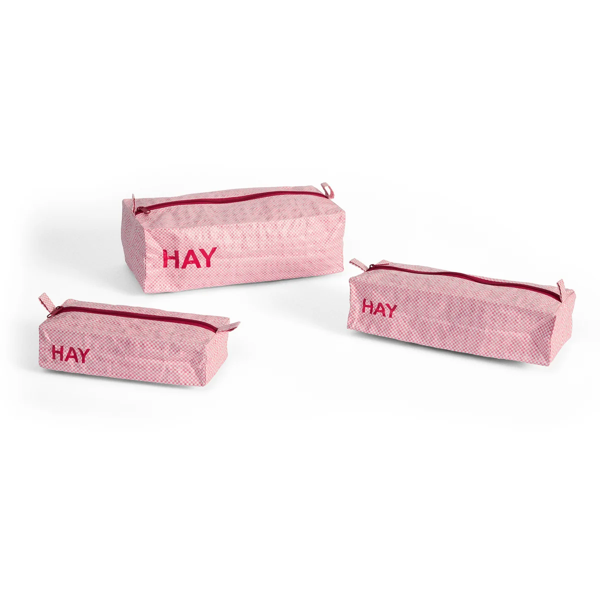 Equipped with a zipper and the striking HAY -logo, the toiletry bag keeps your essentials securely in place - whether at home, on the go or when traveling. Available in three different versions - wash bag, box wash bag and flat wash bag - and each as a set with three different sizes, the wash bag offers Candy Mono maximum flexibility with minimum space requirements.
