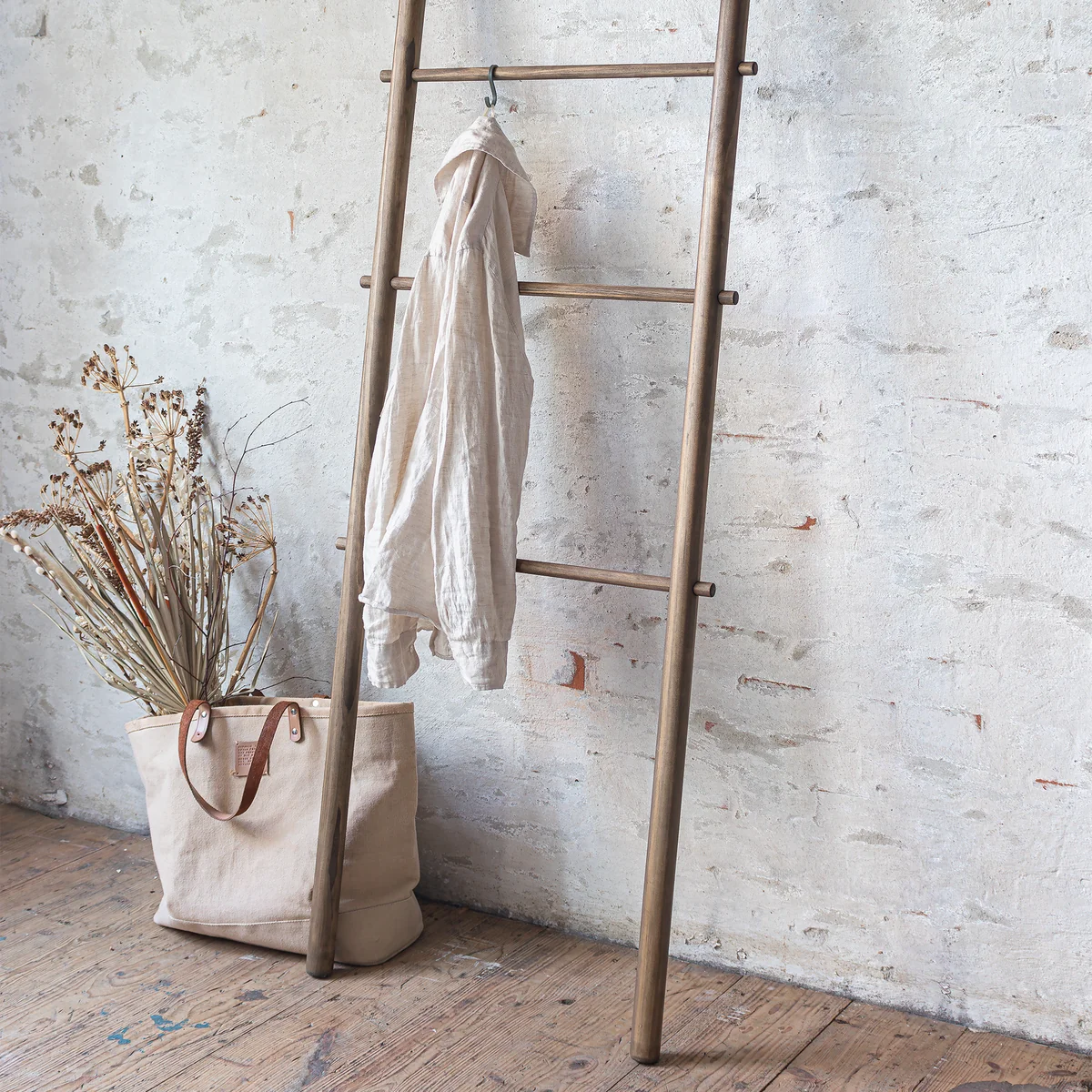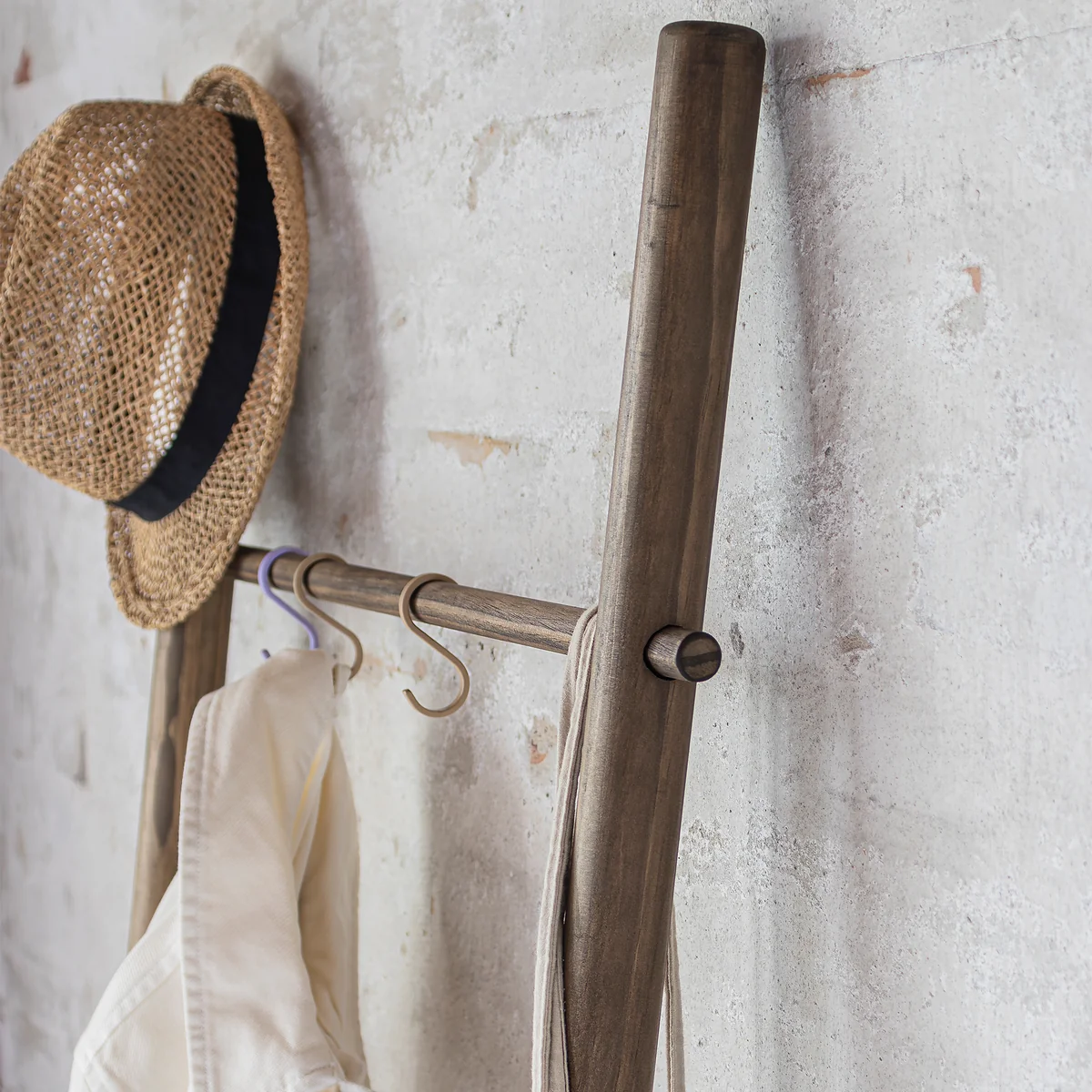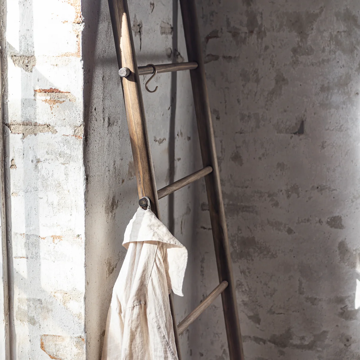 The Roots towel ladder made of dark oiled solid pine is a stylish and decorative storage solution. It is ideal for kitchens, bathrooms, closets or bedrooms. Whether for hanging clothes, towels or tea towels - the shelf can be extended with S-hooks and baskets to create additional storage space.
