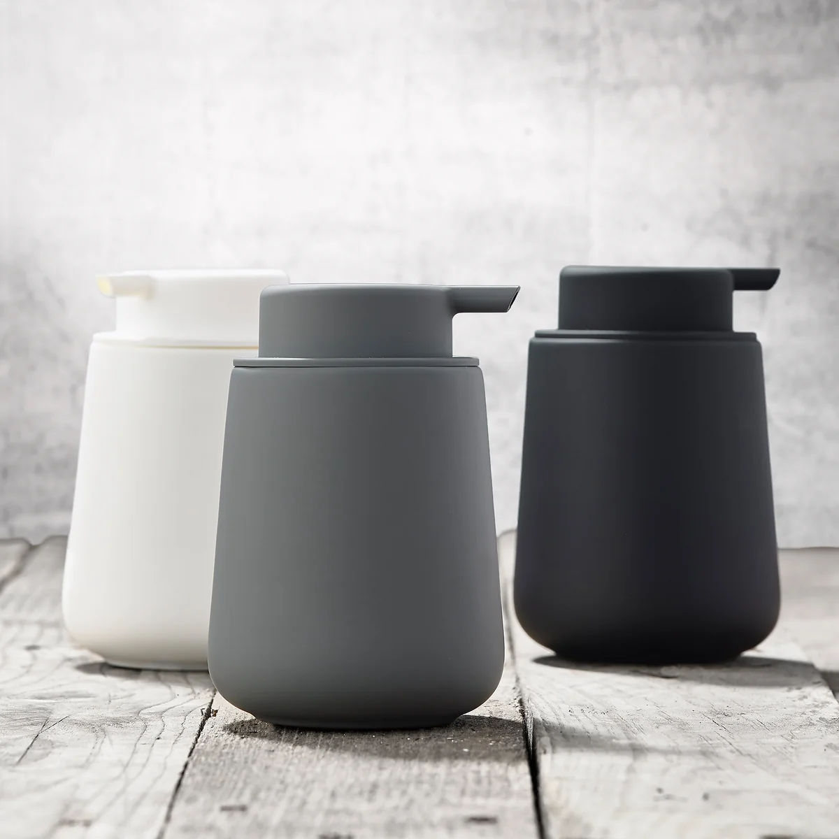 The Nova One Soap dispenser from Zone Denmark impresses with its timelessly simple appearance. It is made of stoneware with Soft Touch coating in various colors and polypropylene and belongs to the eponymous bathroom collection by Thomas Dudzinski.
