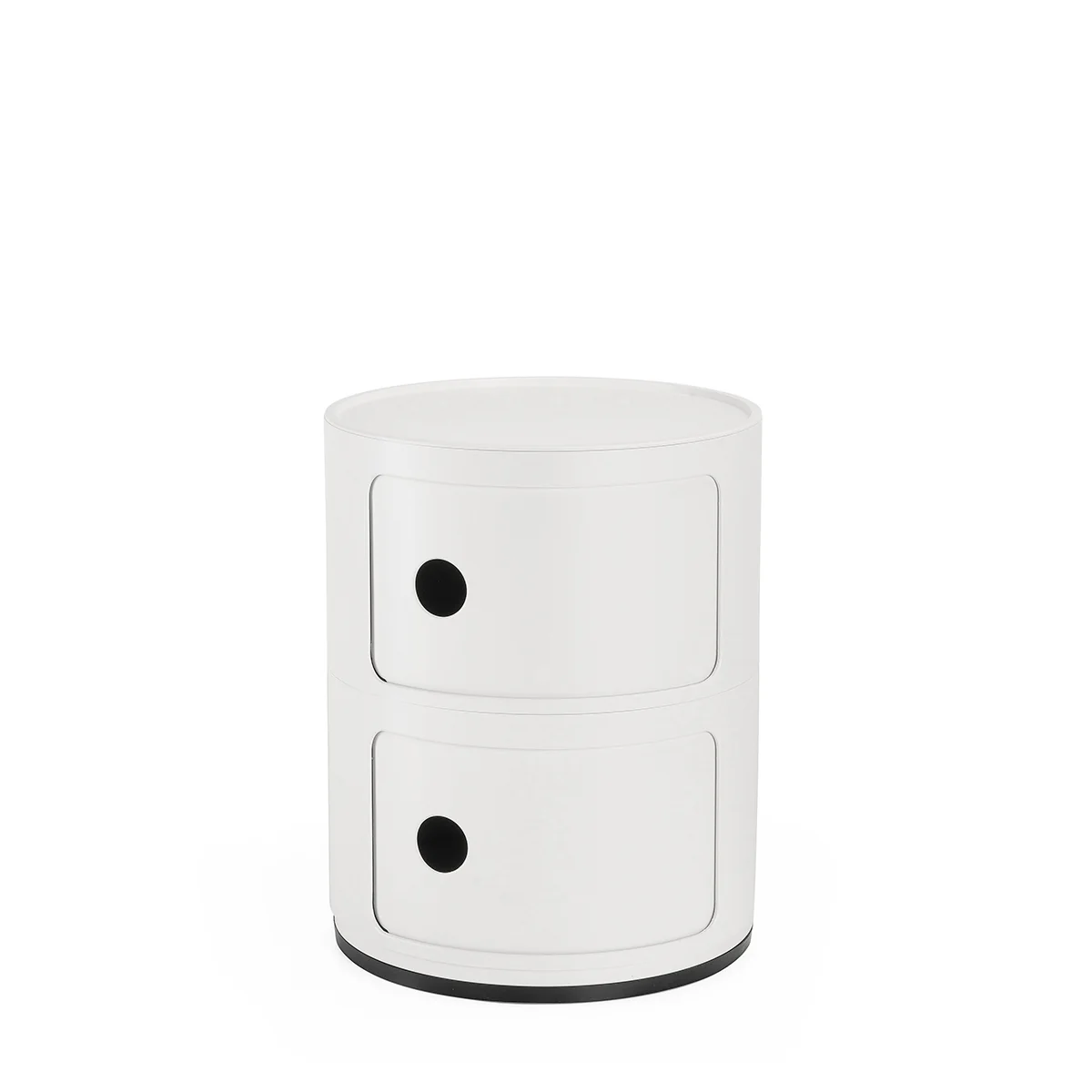 The Componibili 4986 was designed by Anna Castelli Ferrieri for the Italian manufacturer Kartell and is a functional and practical storage unit with a silky matt surface. In the bathroom, in the bedroom, in the kitchen and in the living room as well as in the children's room, the container offers enough space to store various objects. Due to their compact design, they are particularly suitable as a side cabinet or bedside table.
