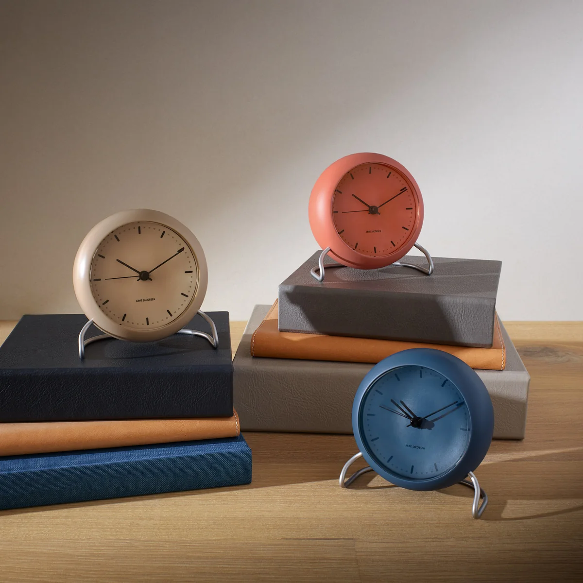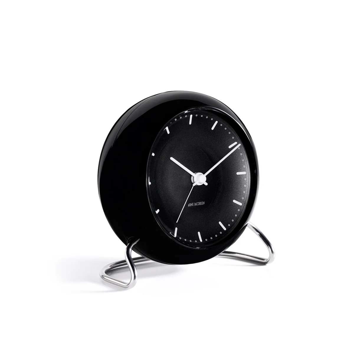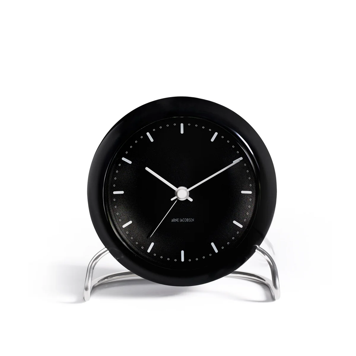 Arne Jacobsen designed many buildings for the Copenhagen suburb of Rødovre in the 1950s and 1960s. The town hall from 1956 shows how much Jacobsen was inspired by international trends during this period, and it is one of his most consistently planned buildings. He designed all the details himself, including the town hall clock, and furnished the building with his own furniture series. The iconic dial of the City Hall alarm clock was modelled on this watch.