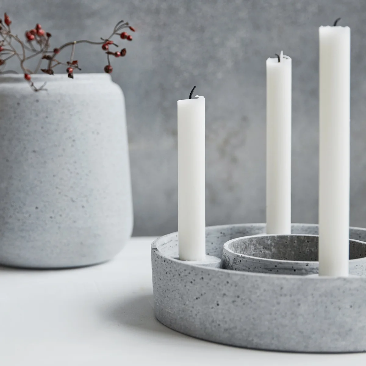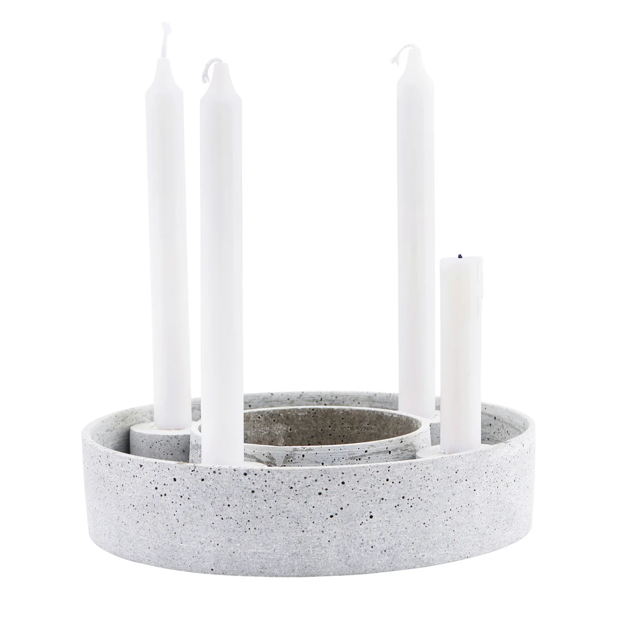The The Ring Candle holder from House Doctor convinces with the modern look. The beautiful, round candle holder has space for four candles of your choice and comes in a cool, rustic look. The candle holder is made of cast stone, which gives the high-quality material in the different colors a soft and stylish character.