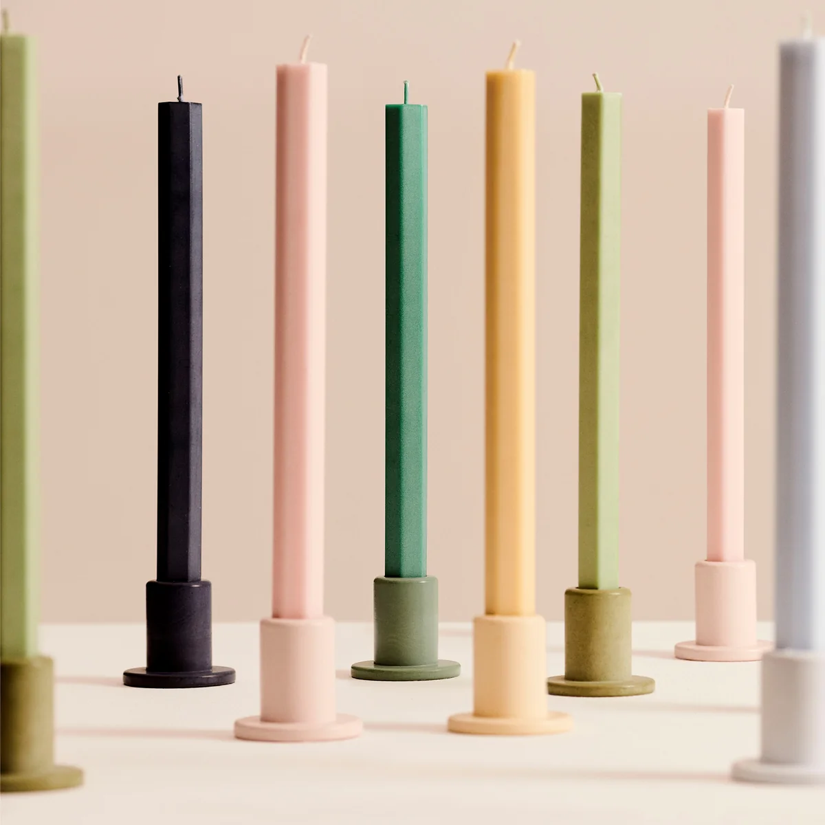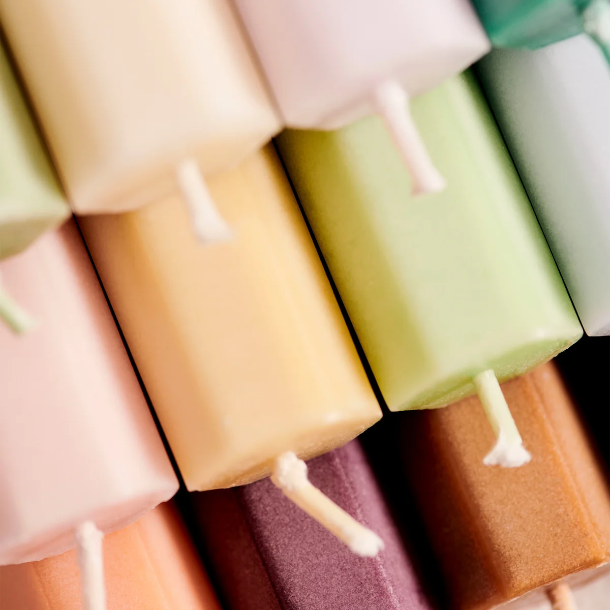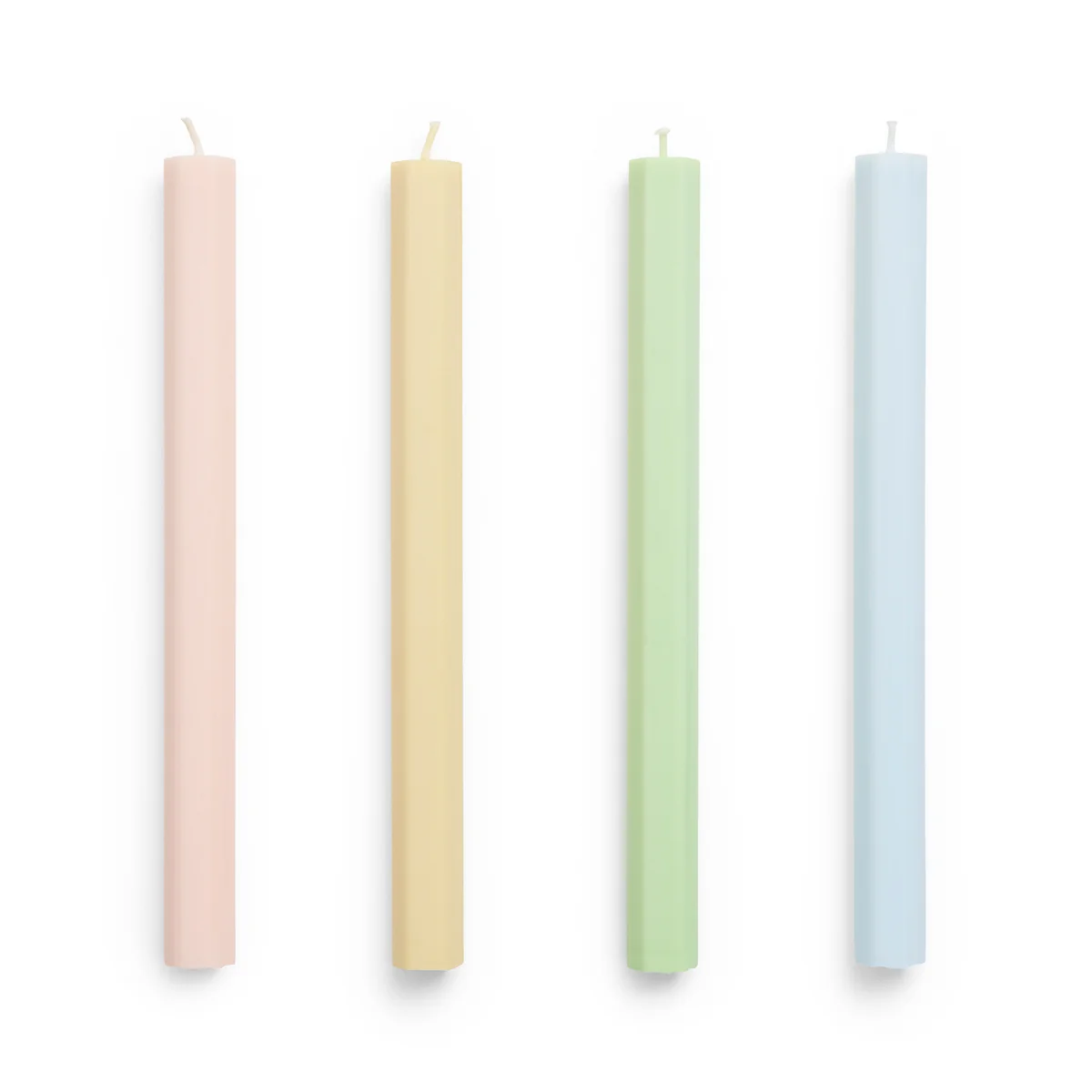 With an elegant hexagonal shape and a matt finish, these luminous stick candles from are Hexagon stick candles from HAY are designed to be equally effective whether they are displayed together or individually. They are certified with the Nordic Swan Ecolabel and offer a burn time of approximately 7 hours. The Hexagon -candles are available in sets of four, with a variety of pattern mixes to suit different preferences.