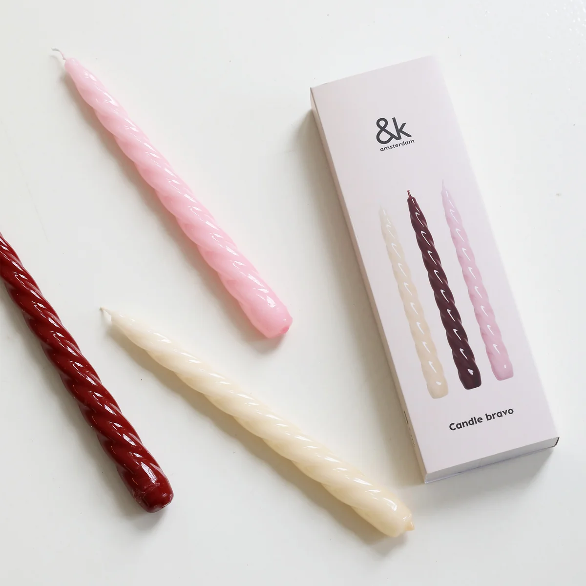 Handmade, twisted pillar candles