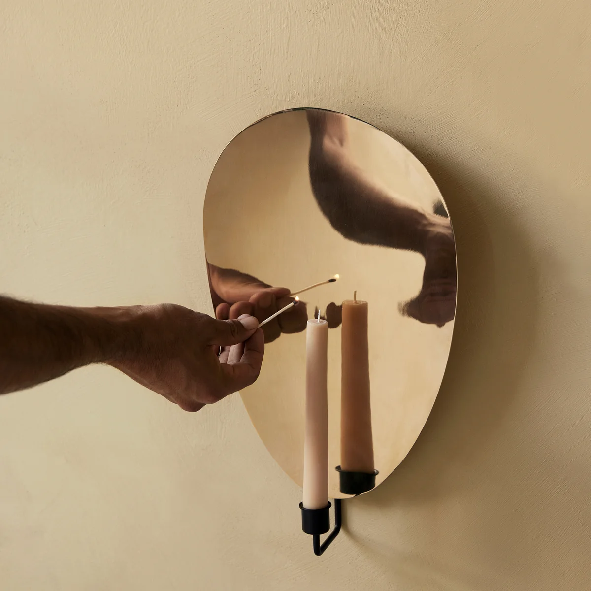 The Flambeau Wall candle holder from Audo presents itself in a modernistic look that enhances any wall. The shape of the candle holder resembles a flame and at the same time ensures through the surface procurement that the light of the candle is beautifully reflected and a pleasant and warm ambience is created. The candle holder provides a special charm and can be mounted on the wall individually or side by side. The Flambeau Candleholder from Audo is available in different designs.