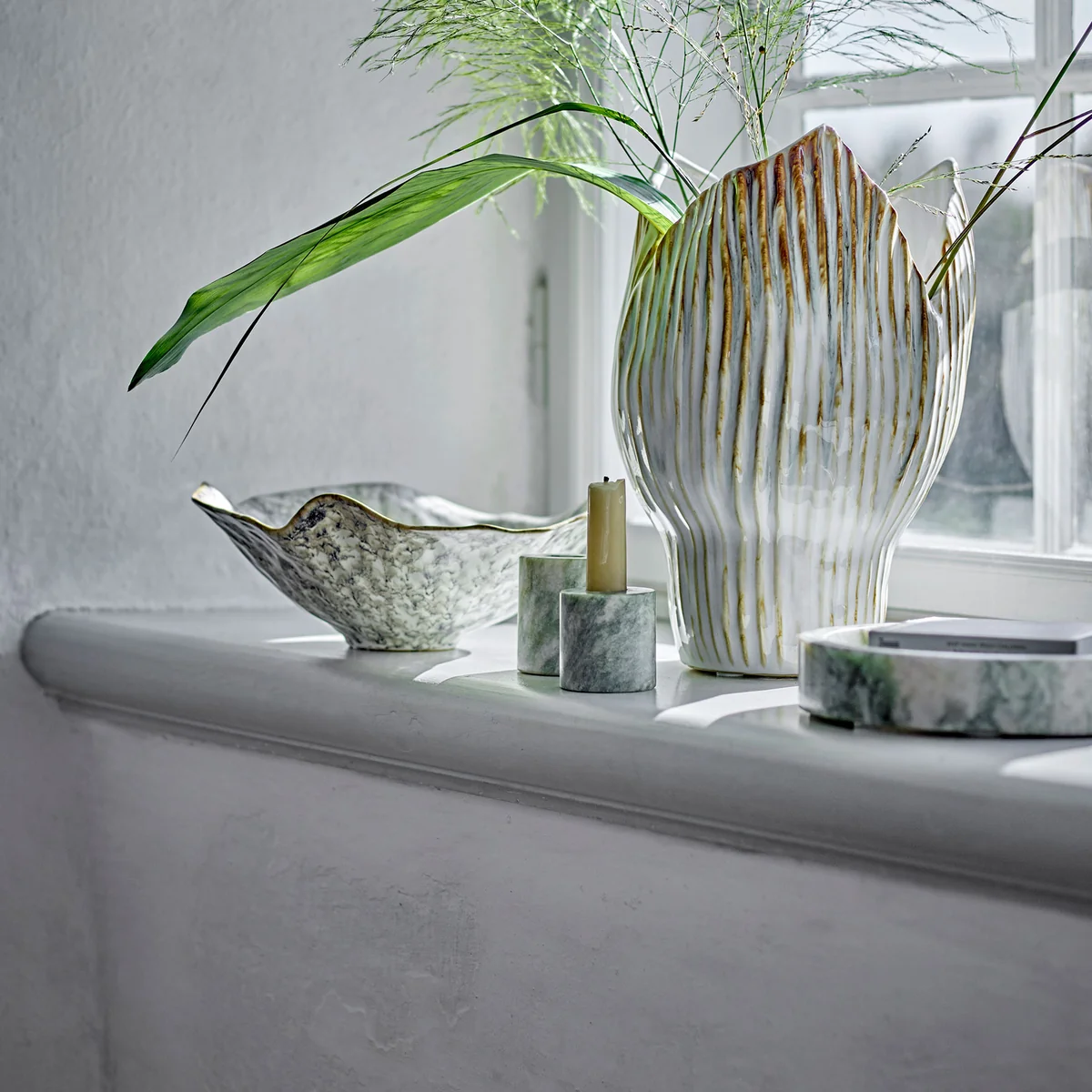 The Kokoro candle holder set brings natural elegance to any home. Made from beautiful green marble, the two candle holders impress with their high-quality workmanship and timeless look. Whether arranged together, placed individually or in combination with other candle holders - they create stylish accents on window sills, bedside tables or shelves and add a personal touch to the room.