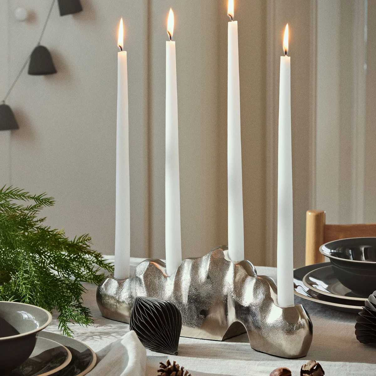 The Lumos candle holder from Broste Copenhagen makes it effortless to add a warm and present atmosphere to any room. Made from matt aluminum, these holders come in unique shapes inspired by nature and embody a tactile and organic aesthetic. Whether placed on a dining table or a windowsill, the sculptural silhouettes create an atmosphere of closeness and coziness that is characterized by their unobtrusive and atmospheric character.