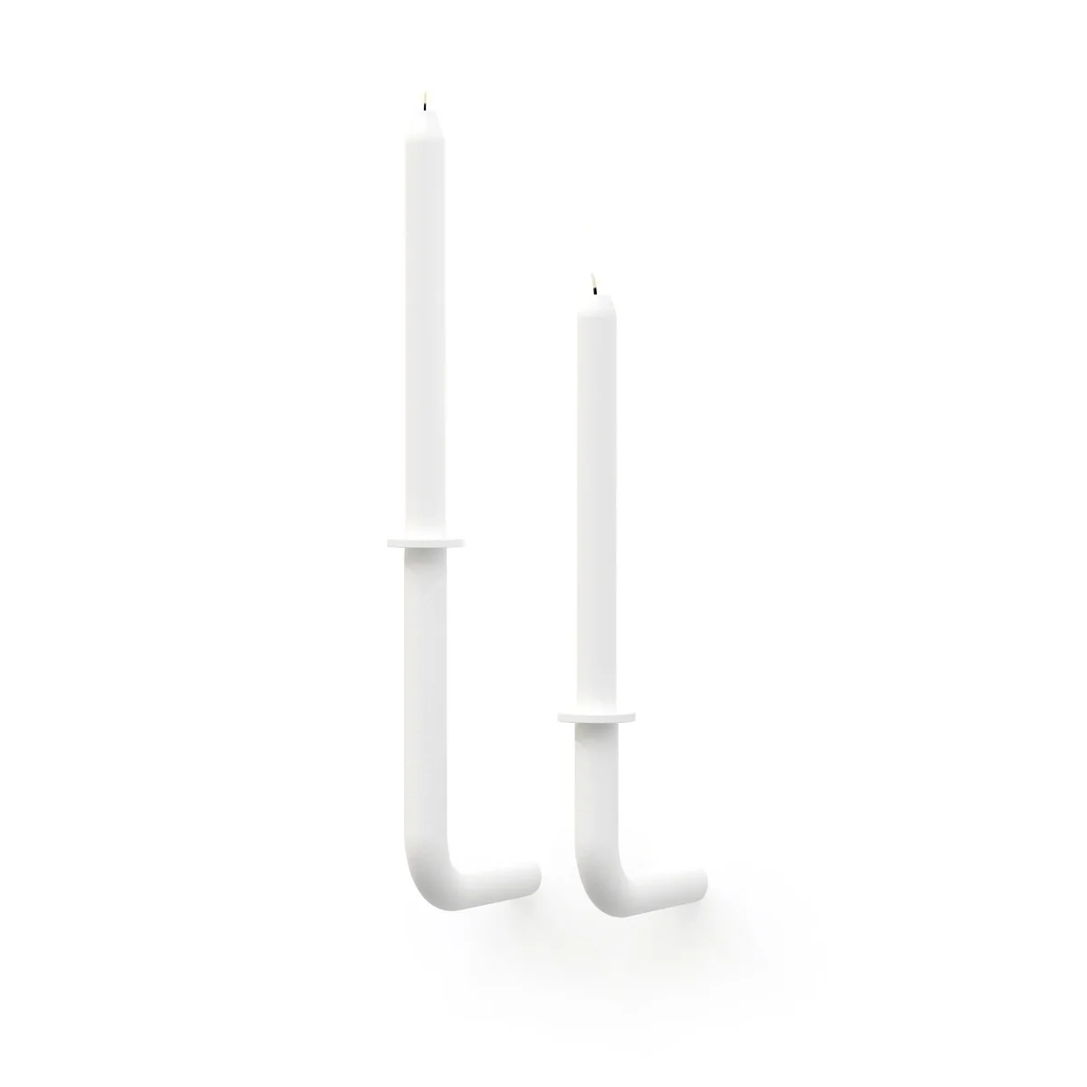 The Wall of Flame series of Frederik Roijé consists of candleholders for the wall in different sizes and colors. Made of metal tubes, each candleholder is bent into its final shape and thus gets its unique form. Mounted on the wall, the holder is suitable for a conventional rod candle. Thanks to its curved shape, the holder stands out several centimetres from the wall, creating a decorative eye-catcher. The light of the candle is also optimally distributed in the room in this way.