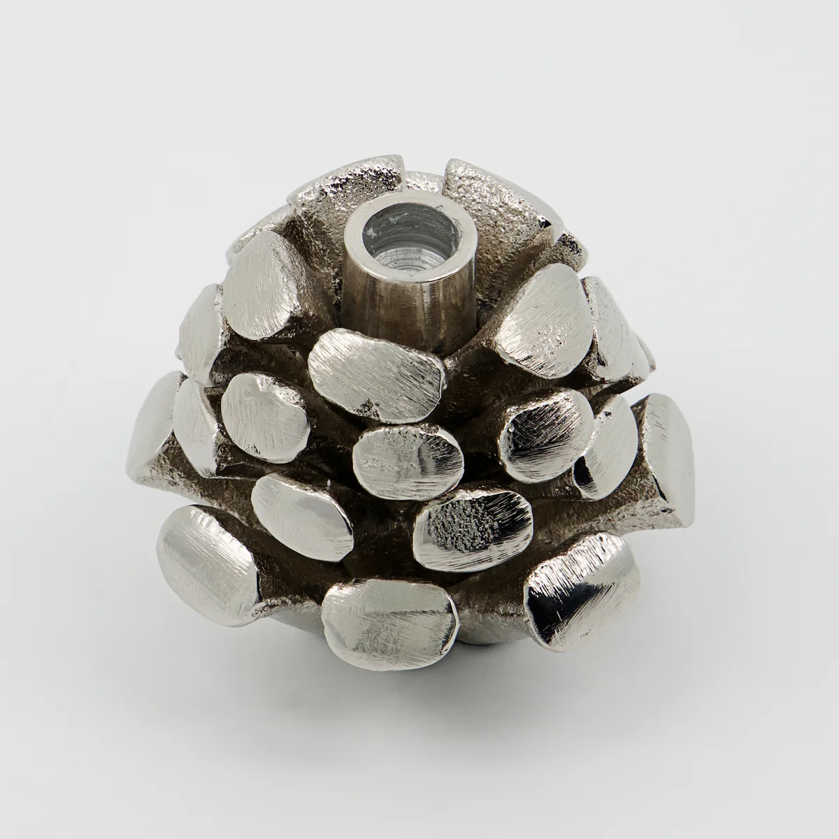 Made of high quality aluminum, the candle holder is not only lightweight and durable, but also beautifully finished. The shape of a pine cone was recreated with attention to detail and gives the candlestick a natural beauty that attracts attention.