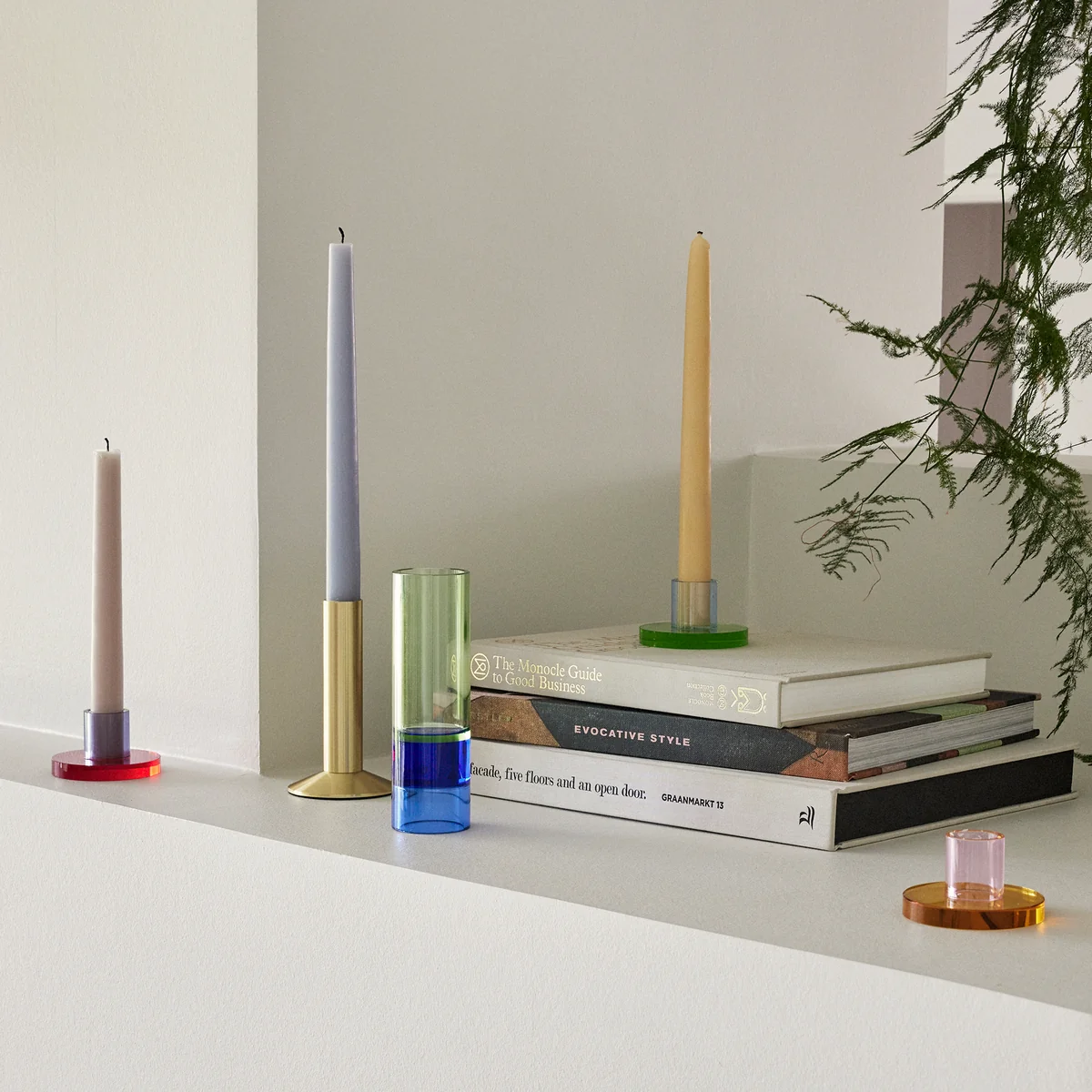 The Astra candle holder of the Danish label Hübsch Interior provides unique light games. Astra is made of transparent colored crystal glass offers an extremely modern touch. The candle holder can be great in the living room on the coffee table, in the bedroom on the nightstand or placed on any shelves or dressers. Astra is available in a variety of color combinations.