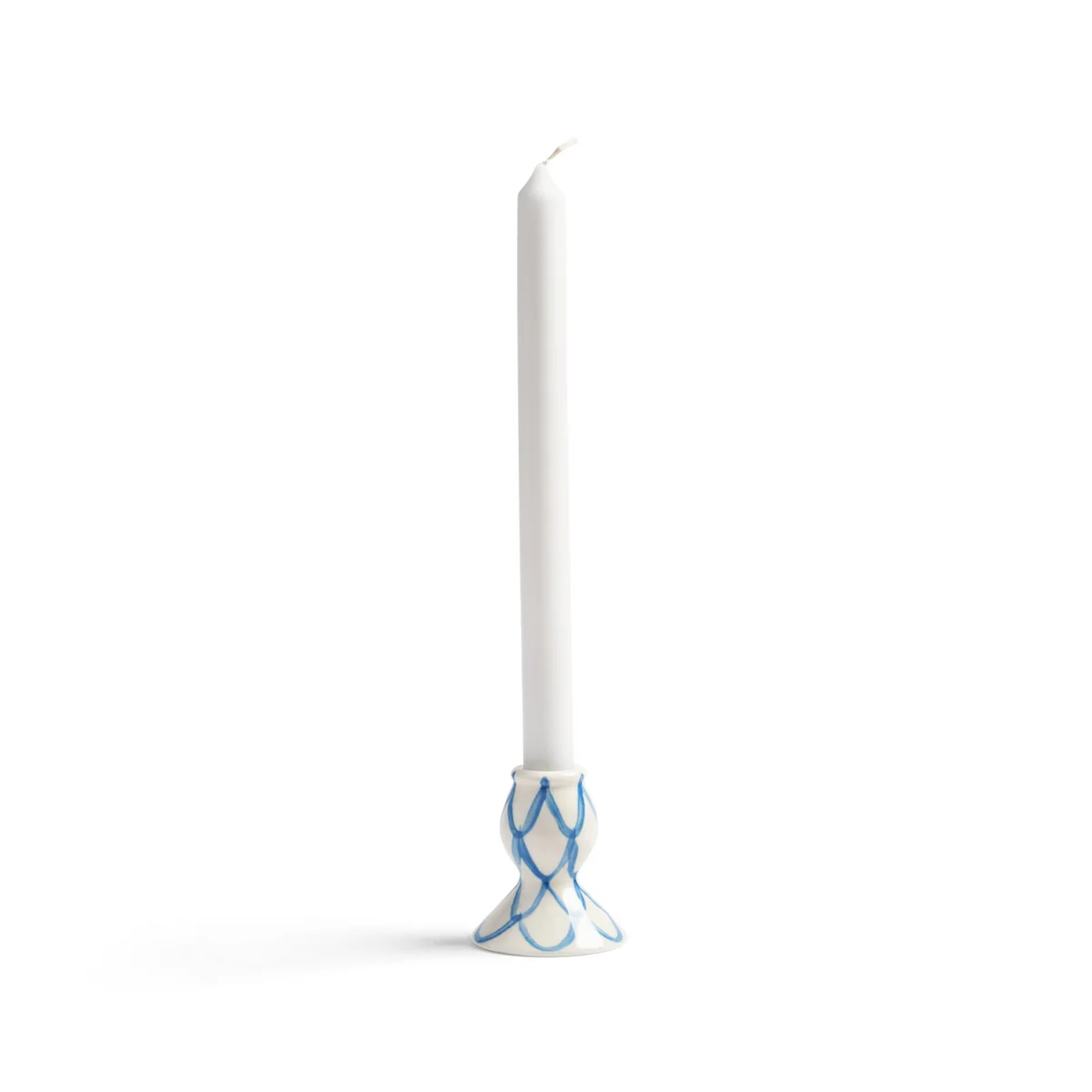 The candle holder Sirène adds a decorative lighting object with subtle dynamics to the series of the same name. Inspired by the structure of fish scales, the candle holder features a geometric relief and hand-painted details that make it an artistic eye-catcher on any table. Whether used individually or in an arrangement, it combines precision craftsmanship with playful design.