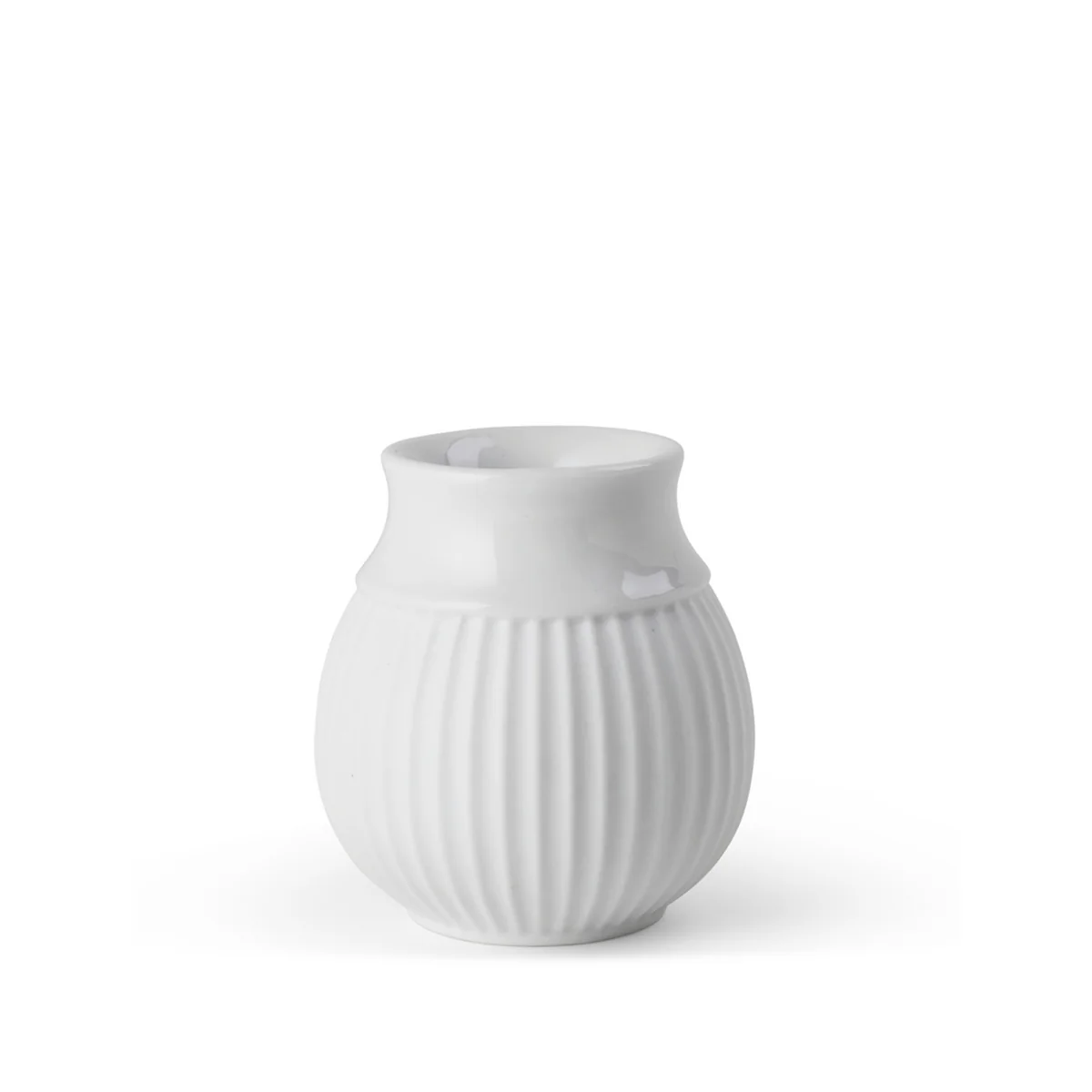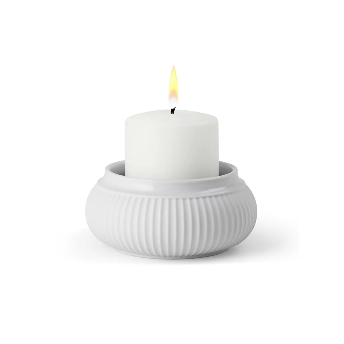 After the popular Curve vase from Lyngby , the matching candleholder has now joined the series. The design is inspired by the legendary basic form 150-2 from the design archives of Lyngby Porcelæn , but is presented in a modified Curve in a modified, softer and bulbous form. The shiny collar of the light contrasts beautifully with the otherwise matt, unglazed surface of the candlelight.