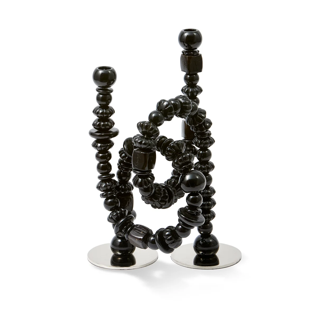 The Beads candle holder from Pols Potten playfully combines round glass beads with a robust aluminum and steel frame. The unusual design impresses with its harmonious combination of transparency and metallic sheen, giving the candle holder a modern yet artistic character. The clear glass spheres refract the light in a fascinating way and stylishly set the scene for candles or tea lights. Ideal for the dining table or as a decorative accent in any room.