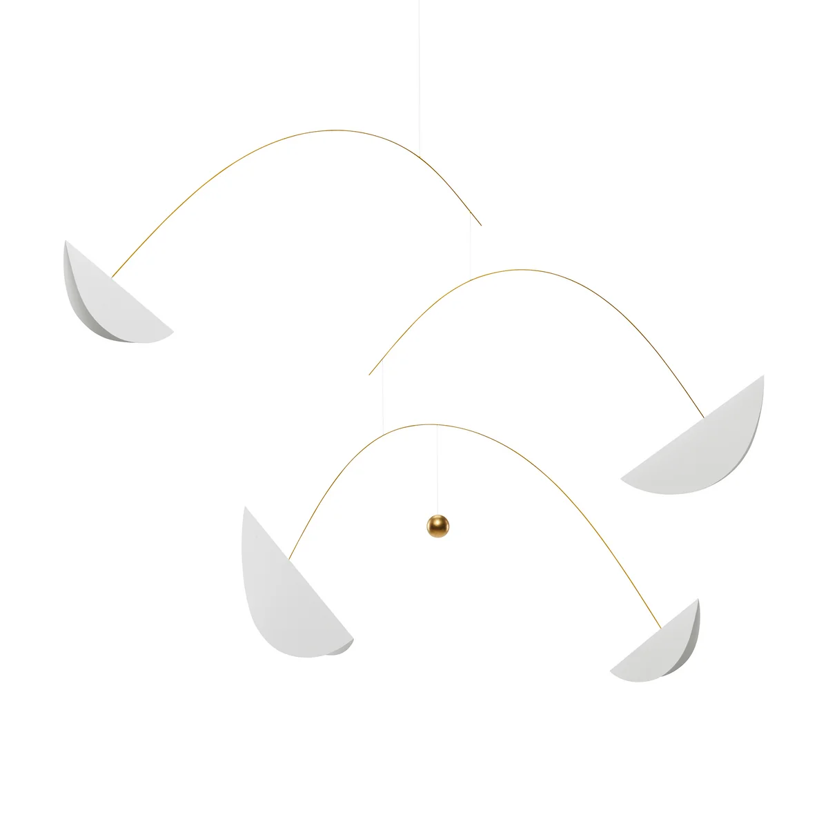 The Life & Thread Mobile from Flensted Mobiles is a beautiful mobile that takes the contrast and balance of all things as its model. The four sails are finely balanced and float in space. This balance and equilibrium makes for an inspiring design contrast on any ceiling. No matter whether the colourful version or in white and gold: The Life & Thread Mobile brings balance into your home.