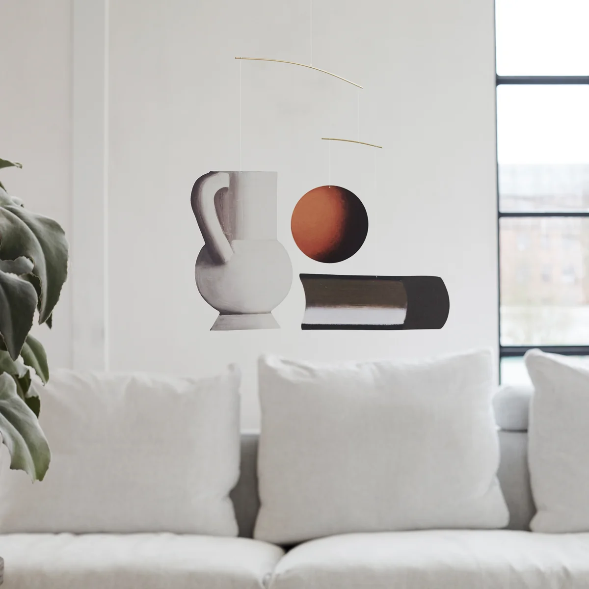 The Lundstroem 1932 Mobile of the Danish manufacturer Flensted Mobiles is a loving tribute to the unique geometry of the painter Vilhelm Lundström. Special source of inspiration was his famous work "Arrangement with white jug, orange and book" (1932-1933). The main elements of the artwork are freely in the air inside the mobile. The wings add calmness to the cubist still life. Lundstroem 1932 Artfully combines angular shapes with significant colors, creating an airy poetry.