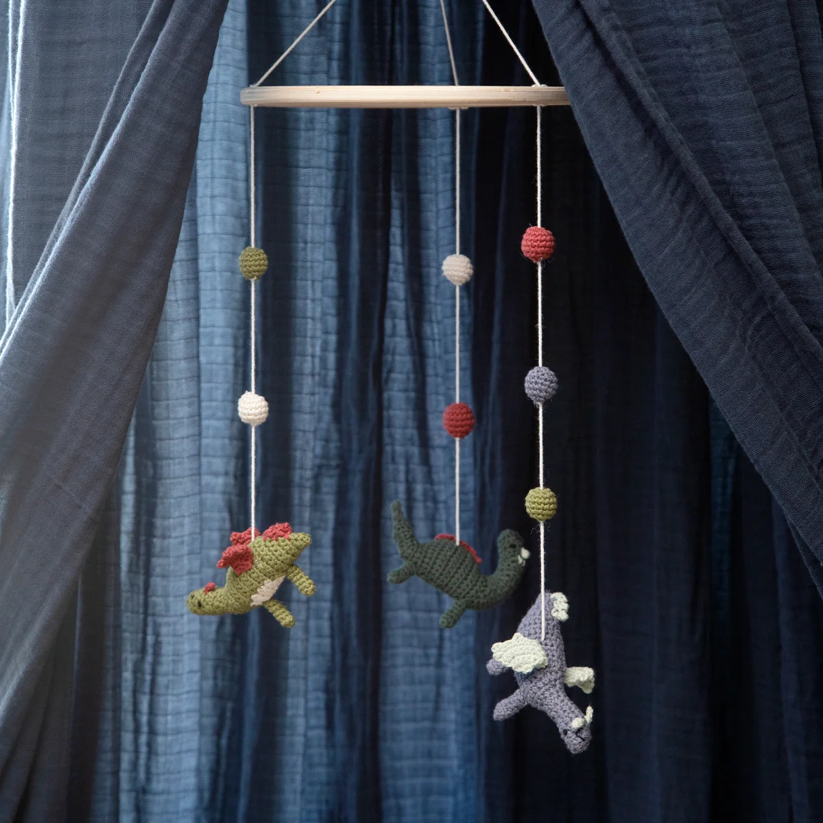 The crochet baby mobile from Sebra impresses with its durability and brings warmth into the baby's room. The beautiful colorful crochet details will accompany babies to a dreamy and peaceful sleep, while helping to create an understanding of shapes and colors. The baby mobile can also be used as a photo prop, thus raising a high decorative standard. Equipped with a loop, the mobile is very easy to attach above the baby's bed or changing table. It is available in different designs.