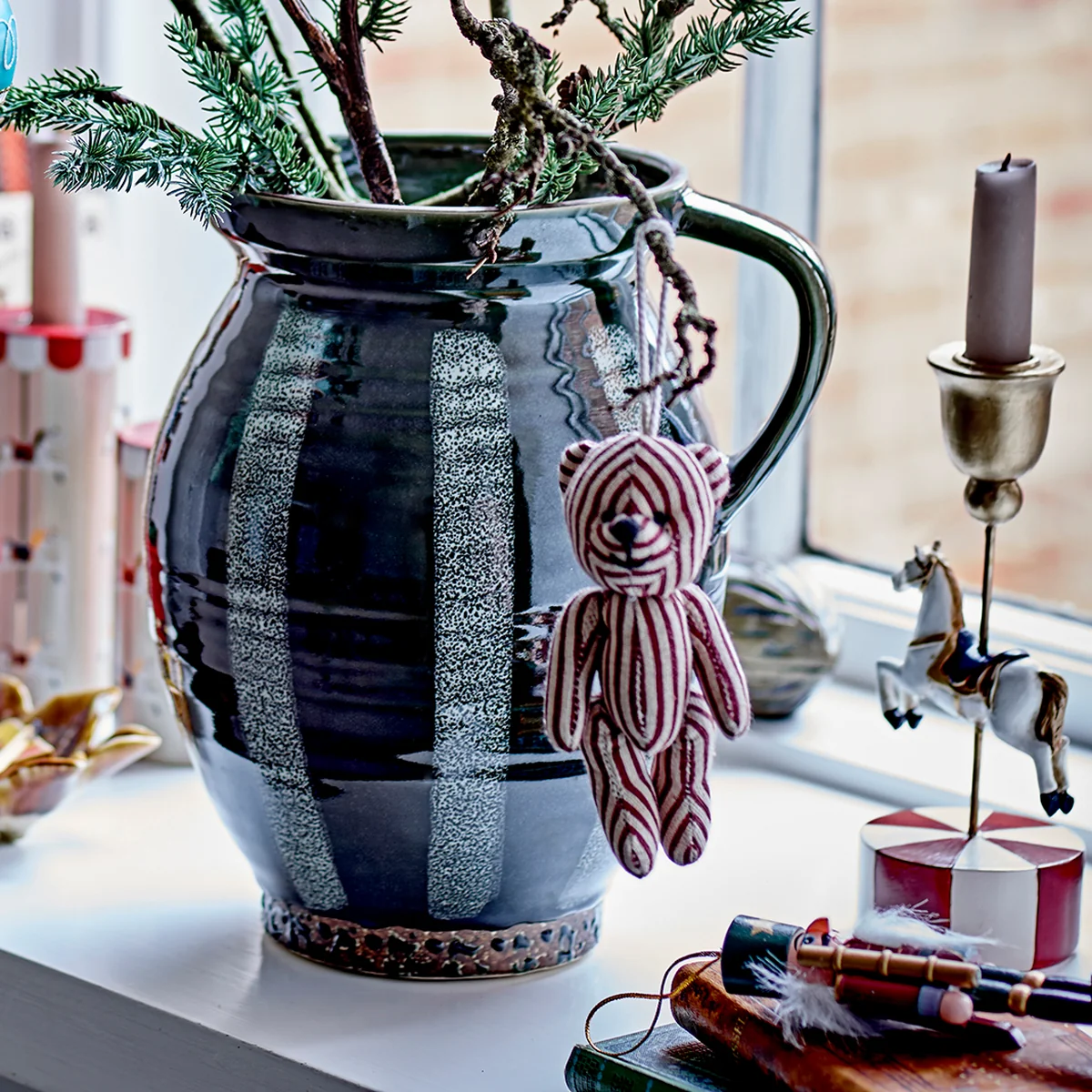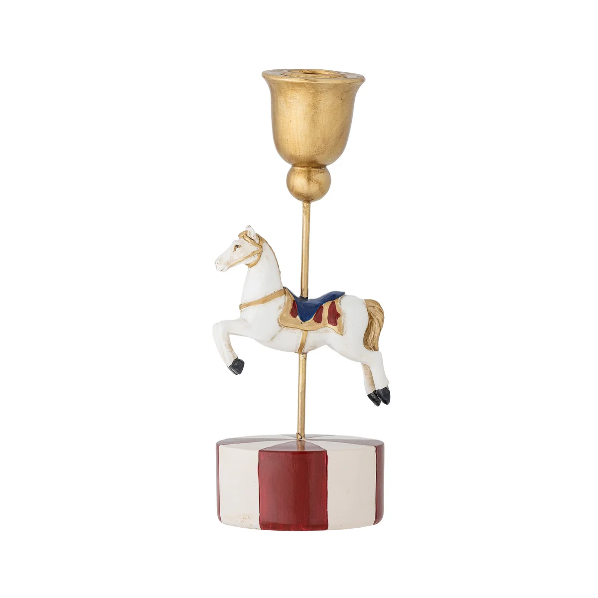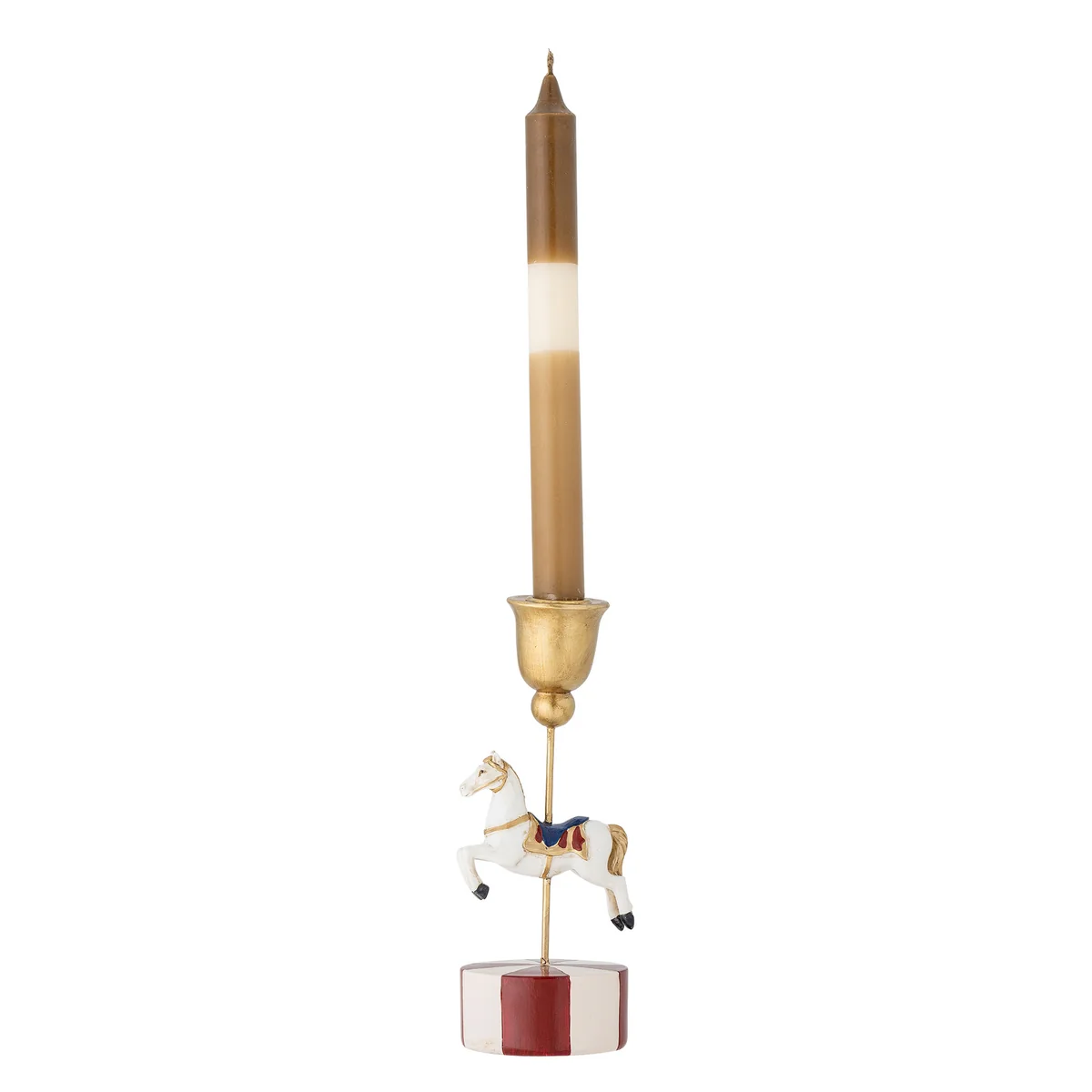 The Merry-go-round candle holders from Bloomingville feature a lovingly hand-painted carousel motif and two different heights. They create warm lighting accents and add a playful, festive touch to the table or shelf. Each piece is unique thanks to the painting.