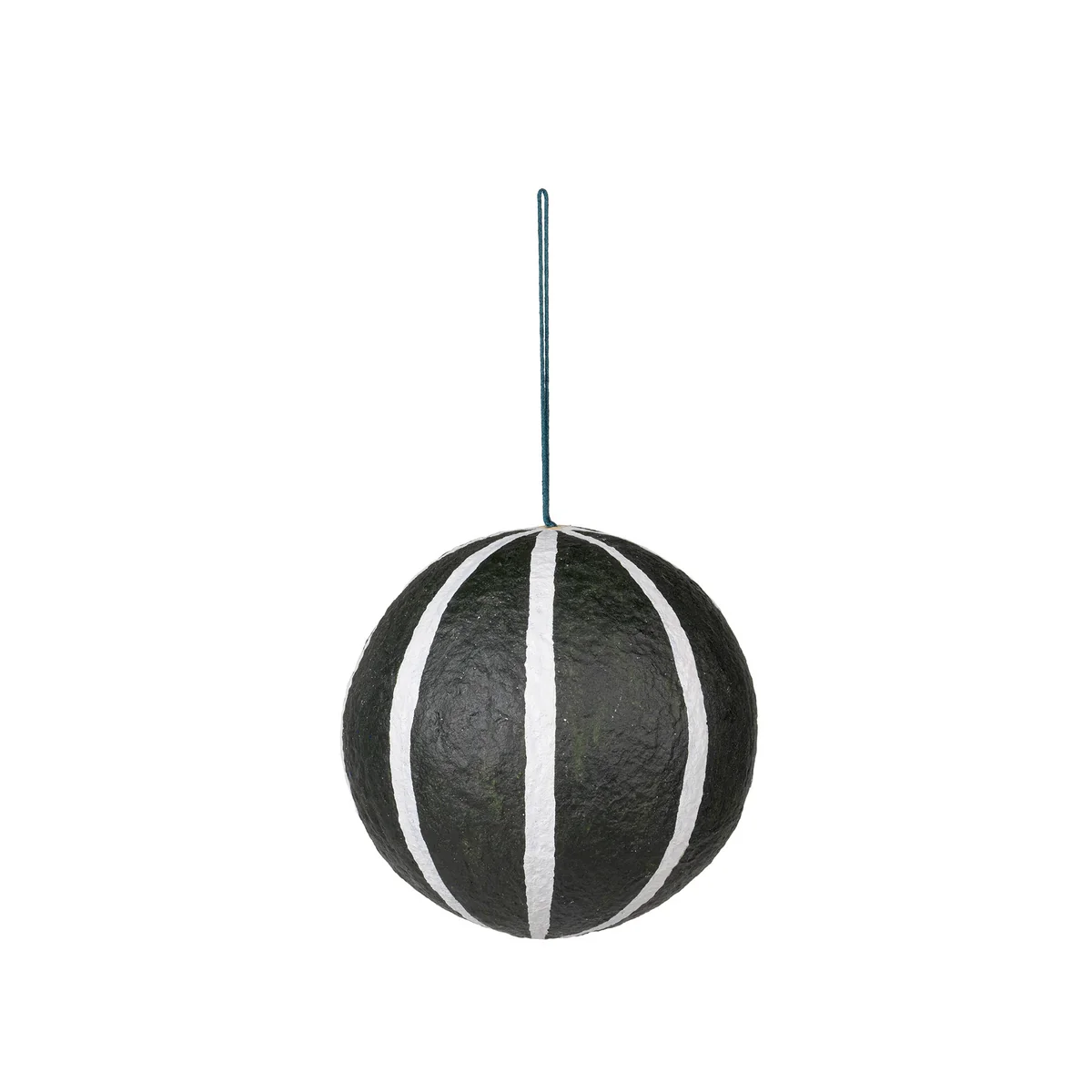 The Sphere Christmas tree ball from the Danish house Broste Copenhagen inspires with its classic look and unusual feel. The pendant with contrasting stripe design is made of cotton according to the Global Recycled Standard. In a variety of color options and sizes, the Sphere Balls can either be combined with each other or attached to the Christmas tree in the same design.