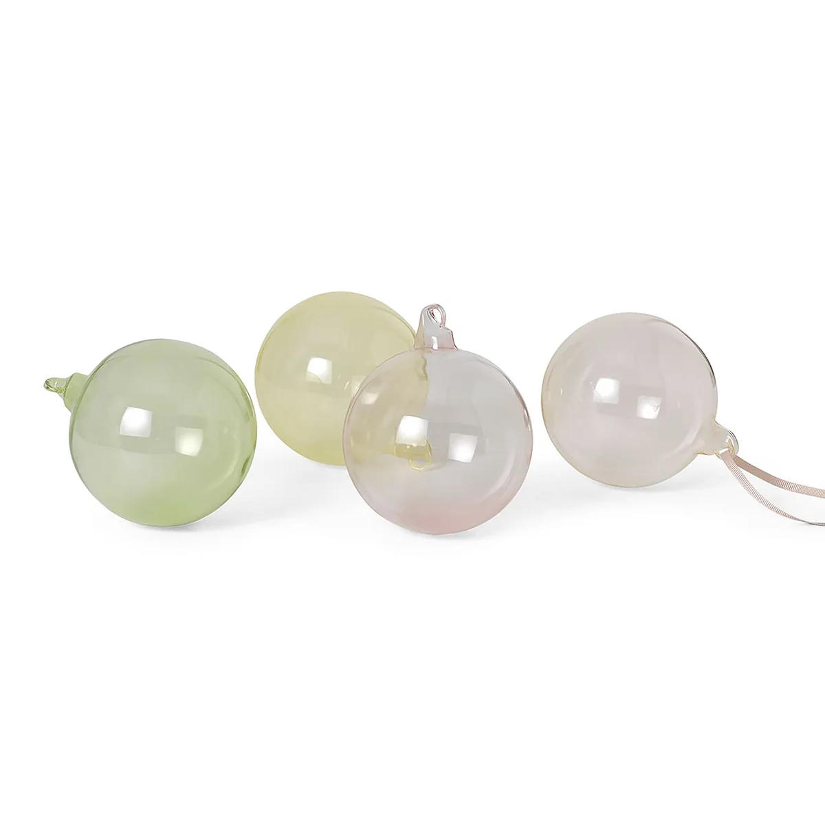 The Glass Baubles Christmas tree balls of the Danish manufacturer Ferm Living ring in the Christmas season with their subtle translucent design. The delicate glass balls reflect the light and provide beautiful light shows. Glass Baubles Are elegant, unobtrusive Christmas tree balls that decorate any Christmas tree in a noble way. The Christmas balls are available in sets of 4 or 8 in different color combinations in the Connox Shop. Each set is equipped with a ribbon with which the balls can be hung at the desired height.