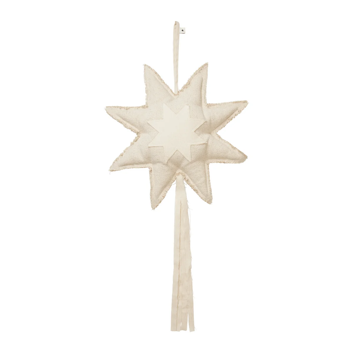 The Vela window ornament from Ferm Living combines simple nostalgia with tactile warmth. The soft star shape made of natural canvas is reminiscent of handmade festive decorations from the past - deliberately imperfect, with slightly frayed edges and an appliquéd inner shape that creates graphic depth. The soft filling gives the ornament a gentle three-dimensionality. Whether at the window, on branches or free-standing in the room - Vela brings a calm, festive atmosphere to any home.