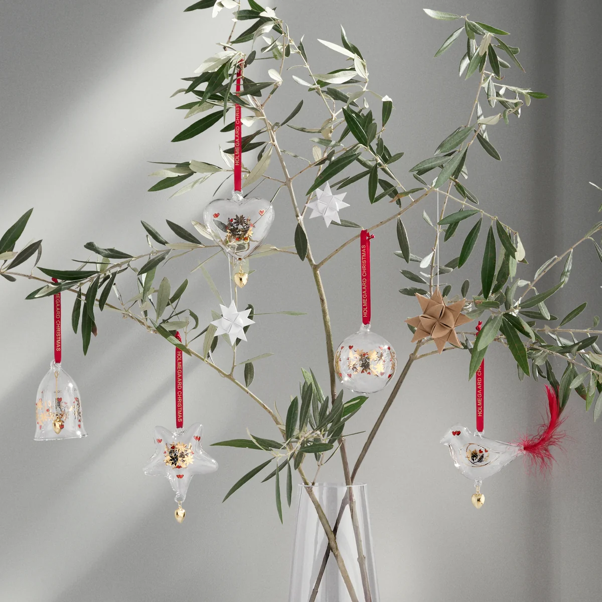 The Holmegaard Christmas decorations were created by designer Ann-Sofi Romme. Her delicate glass decorations for the Christmas season impress with an unbeatable lightness that brings tasteful style to the ambience. The various motifs are ideally suited to be used together as an ensemble. They are made from mouth-blown borosilicate glass.