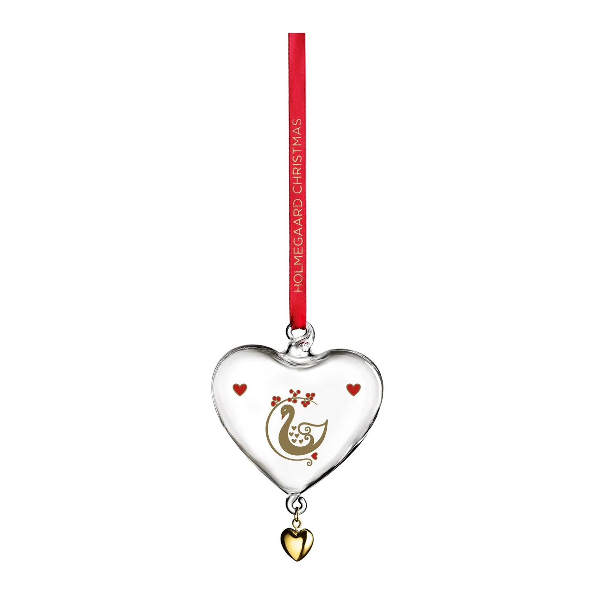 The Christmas heart from Holmegaard is a particularly elegant piece of Christmas decoration. The filigree, transparent glass body in the shape of a heart impresses with its high-quality details: a Christmas flower motif in a subtle golden color and Christmas red heart motifs show the love of the festive season and round off the Christmas ambience.