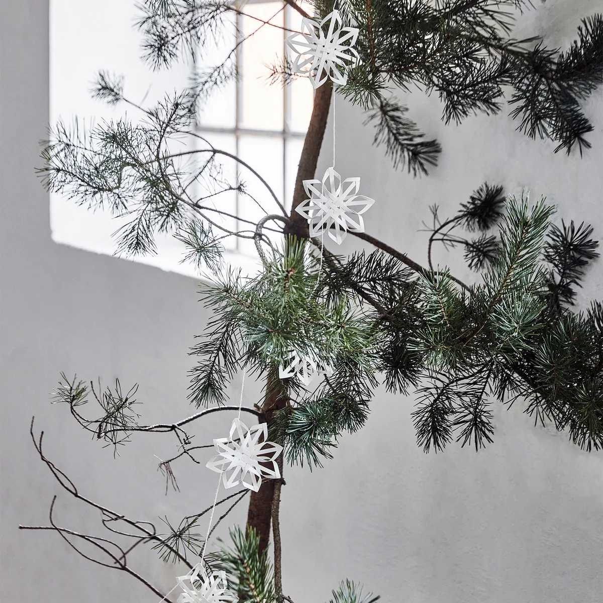 The Brai garland from House Doctor adds a magical touch to the holiday celebration and conjures up a festive atmosphere in the home. The garland is a real eye-catcher and sets festive accents for a magical Christmas decoration. Made of high-quality paper, the paper garland impresses with its filigree design and the artfully punched out star motifs. The stars shine in a festive glow and catch the light of the Christmas lights to make the celebration shine in a magical light.