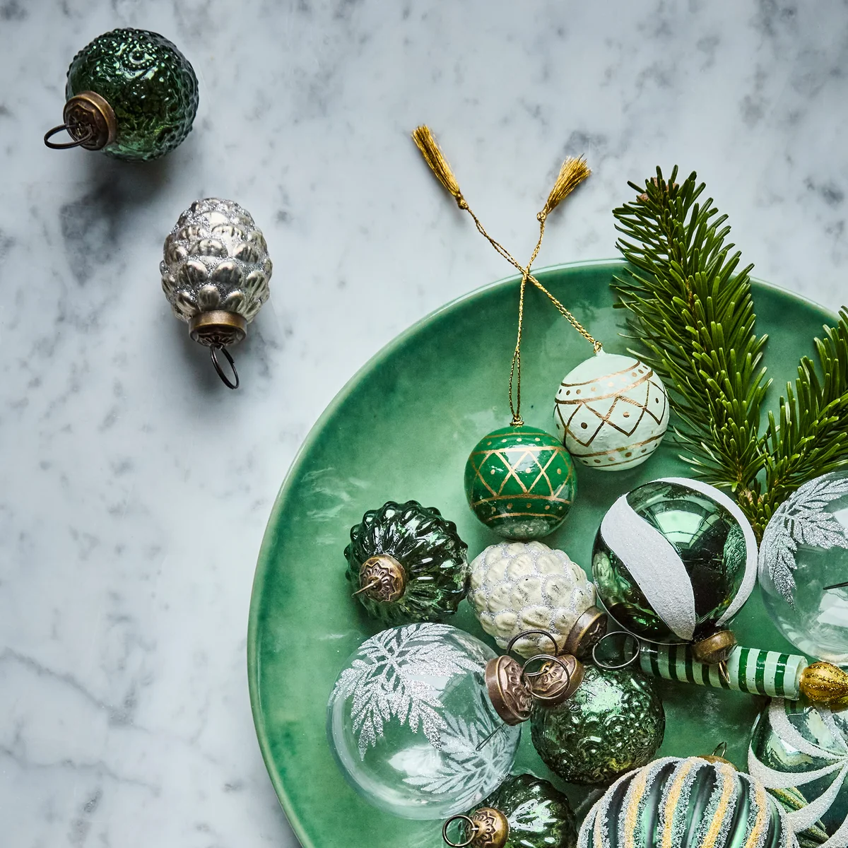 The Cone ornaments from House Doctor decorates the Christmas tree in an elegant and classic way. The sparkling pine cones look mysterious and elegant and make the Christmas tree shine. As soon as the lights are dimmed, the pine cones start to glow softly and create an enchanting atmosphere in the room. In a practical set of 6, the ornament can be used for any home decor.