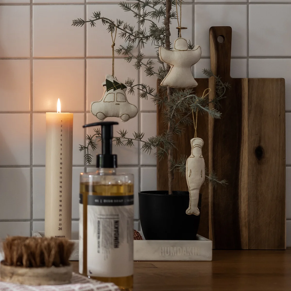 Humdakin cotton Christmas ornaments are distinguished by their texture and visual discreetness. The pendants are available in different designs.