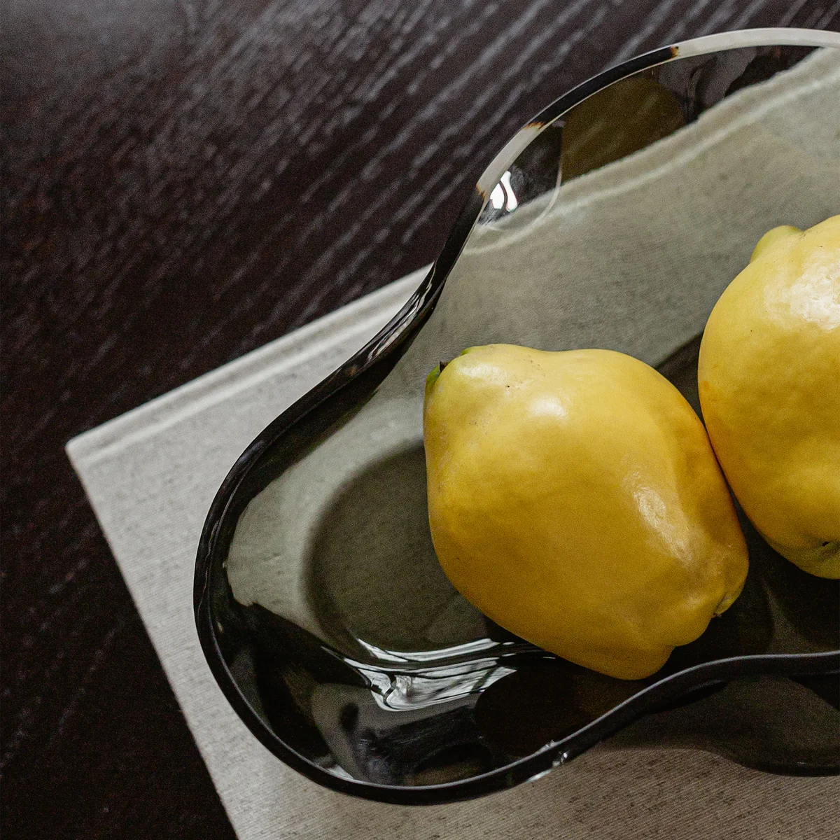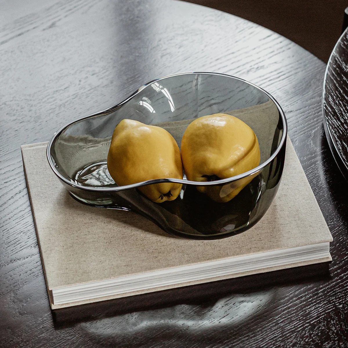 The Aer Bowl of the Danish label Audo inspires with its wave-shaped design. The smoke-colored glass in spiral movements modeled after the air. The sculptural surface of the bowl looks exceedingly charming. You have the choice - either filled with all kinds of treats or placed alone as a decorative decorative object.